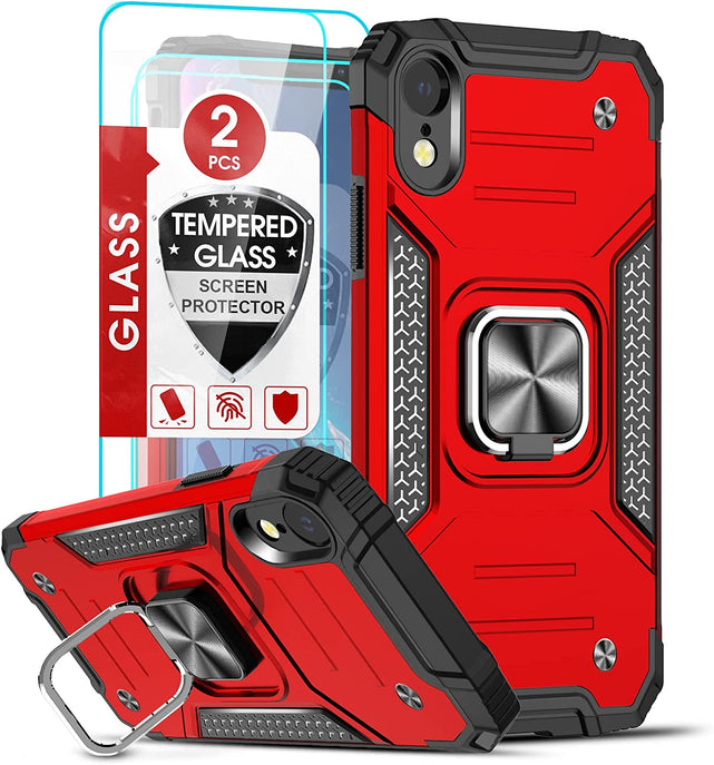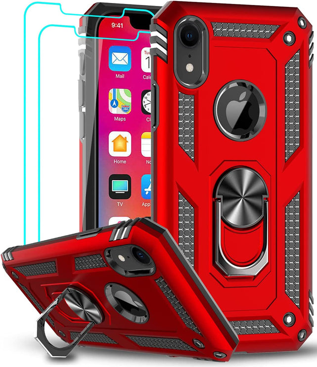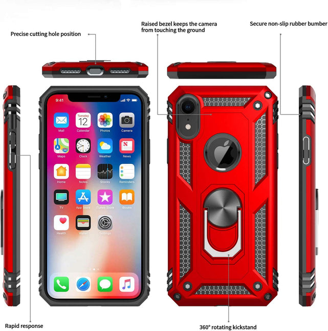 iPhone XR Protective Case, Heavy Duty Ring Shockproof Case - Red