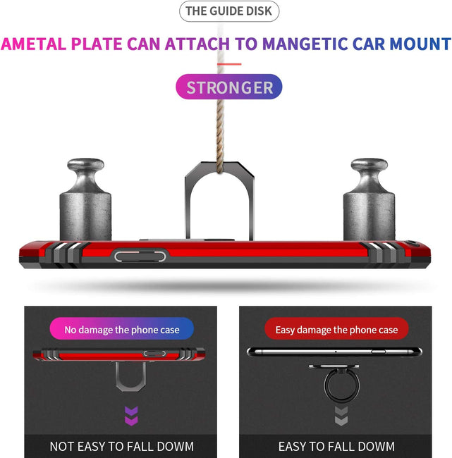 - 【360° Rotable Kickstand Design】 Metal ring kickstand can rotate 360°,easy to rotate and sturdy on the case.Built in kickstand gives you the convenience to watch videos and movies hands-free with desired comfort and stability,Besides,Built-in metal magnetic sheet for stable adsorption,which can be directly adsorbed to the magnetic car mount holder.(Not includes the magnetic car mount holder)