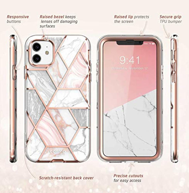 i-Blason Cosmo Series Case for iPhone 11 (2019 Release), Slim Full-Body Stylish Protective Case with Built-in Screen Protector, Marble, 6.1''