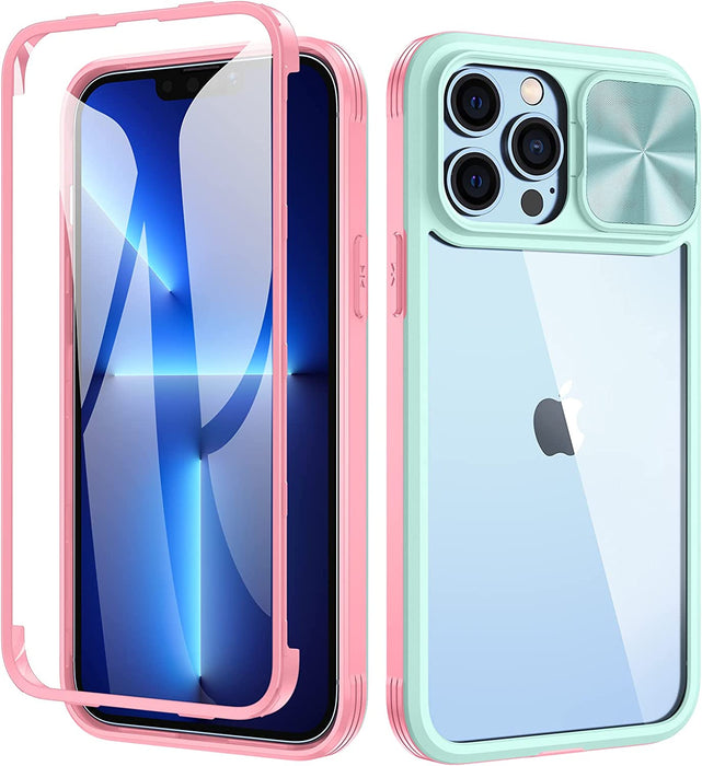 Maxdara iPhone 13 Pro Max Case Built-in Screen Protector 6.7 inch Pink Green