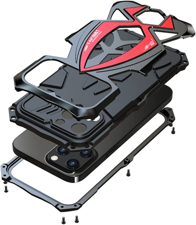 Metal Armor Compatible iPhone 13 Pro Max Case 6.7 inch Black Red