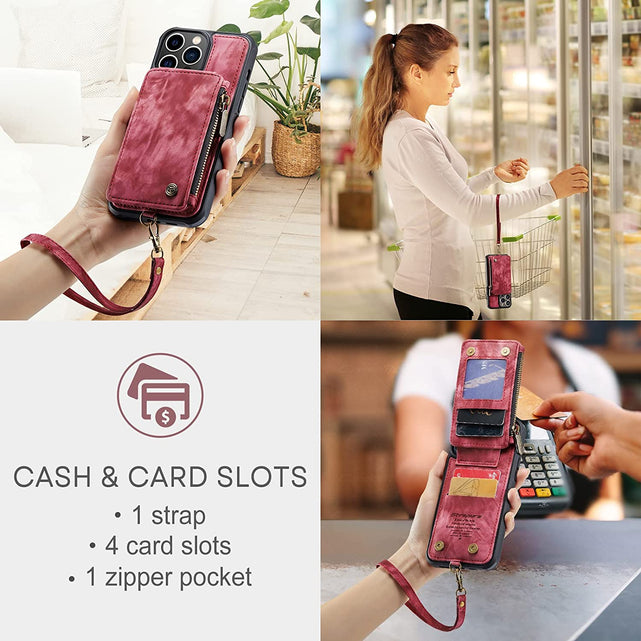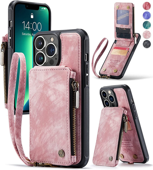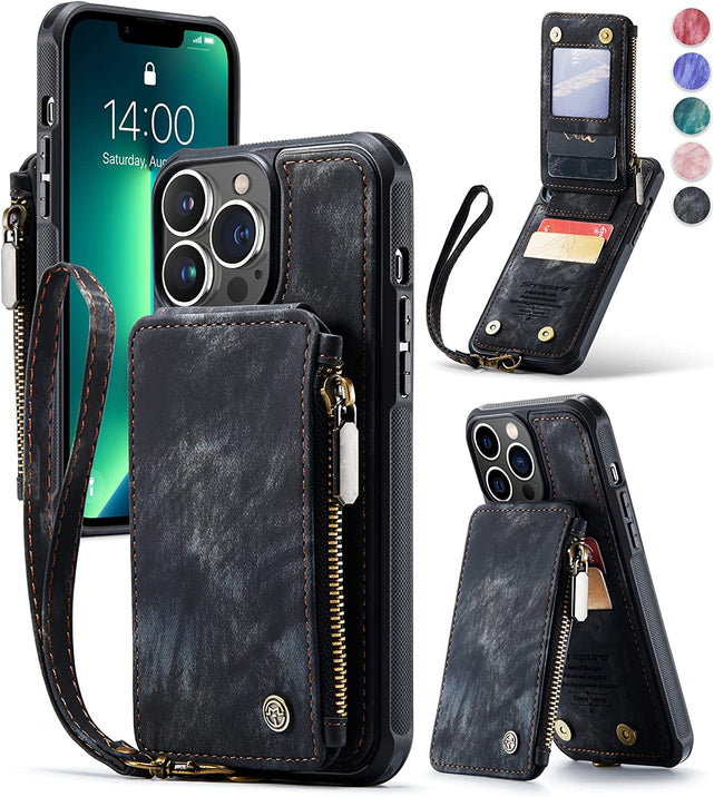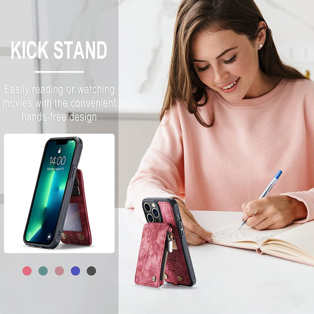 - ✔FUNCTIONAL WALLET --- Case for iPhone 13 Pro Max with 4 Card Holders and a small zippered wallet case, holds extra credit cards and loose change coins. This phone case also can be transformed into a kickstand for hands-free when you watch movies, videos, or FaceTime.