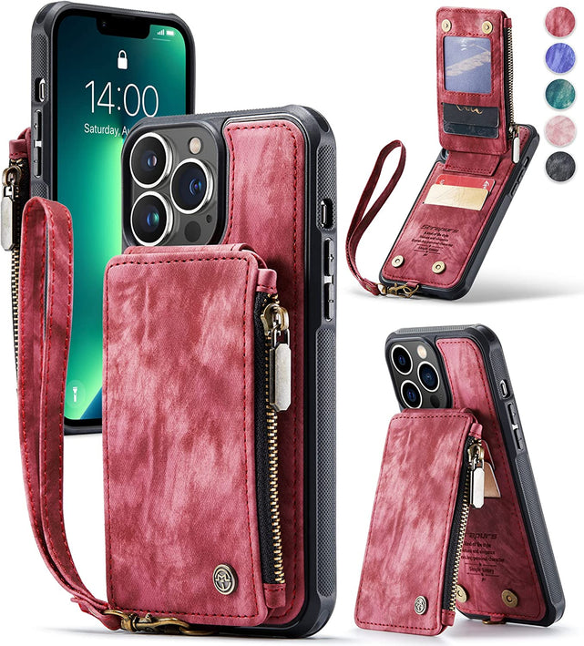 Strapurs Wallet Case iPhone 13 Pro Max Protective Case 6.7",Fashion Red