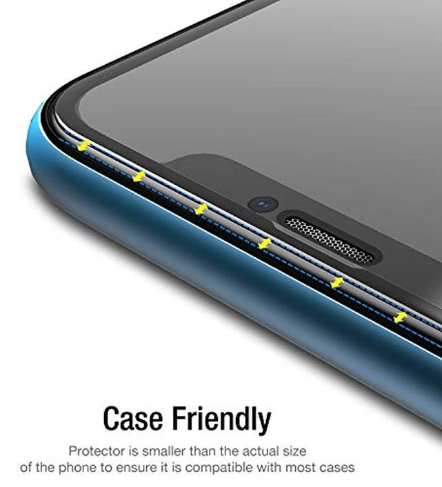 - This Secure Glass is most current 3D Glass Bowed Innovation. This makes the glass twisted to splendidly fit iPhone XR round edge. It ensure iPhone XR screen in full edge. Full cover ensuring iPhone XR contact screen [Case friendly]