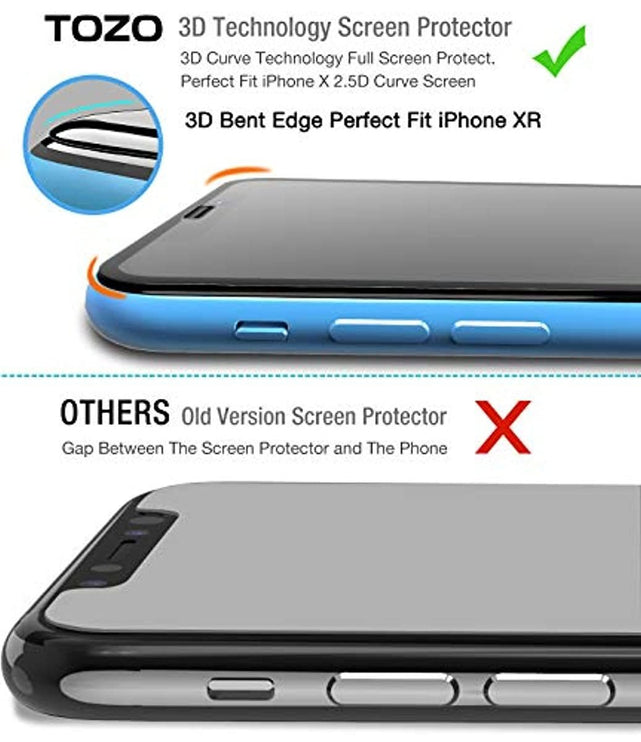 TOZO for iPhone XR / iPhone11 Screen Protector [ 3D Bent Full Frame ] Premium Tempered Glass (2 Pack) 9H Hardness for iPhone 11 (2019) / XR 6.1 inch (2018) with [Easy Installation Tool]
