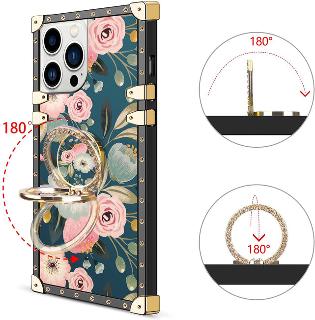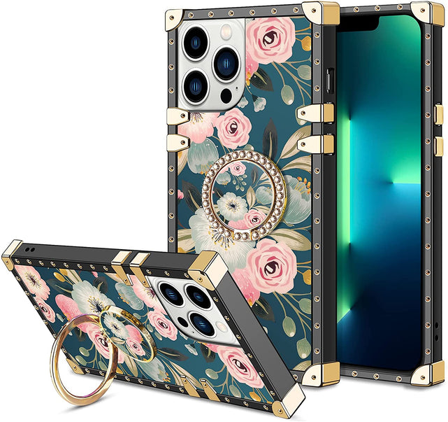 - Perfect Gift: Luxury square case for iPhone 13 Pro Max smartphone for girls and women with ring holder is a great gift for your friends, girlfriend or familys on Birthday, Christmas, Thanksgiving, Halloween, Valentine's Day or other special days.