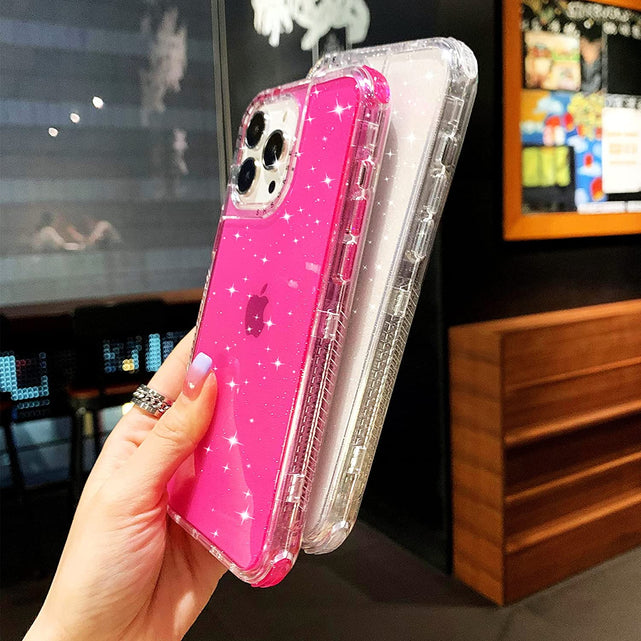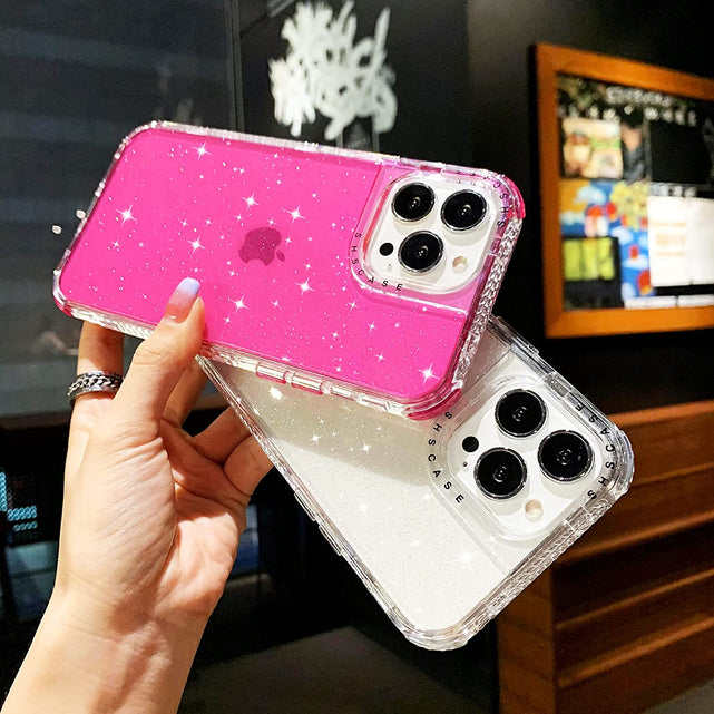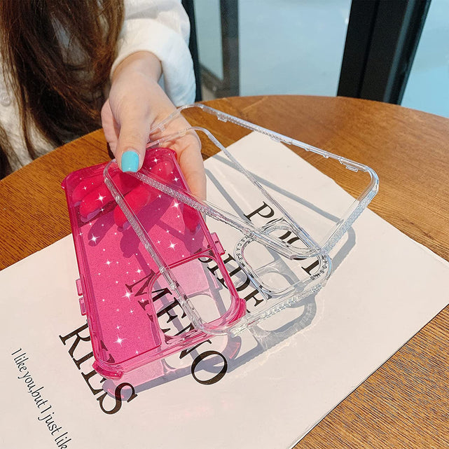 Women's iPhone 13 Pro Max Glitter Shockproof Case. (Pink)