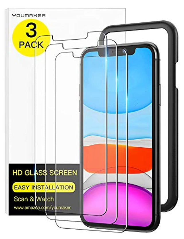 YOUMAKER 3 Pack HD Tempered Glass Screen Protector for iPhone 11 & iPhone XR, Case Friendly with Easy Installation Alignment Frame Premium Tempered Glass Film for Apple iPhone XR/11 6.1 inch - 3 Packs