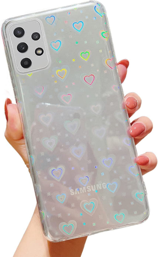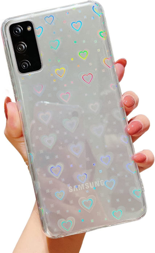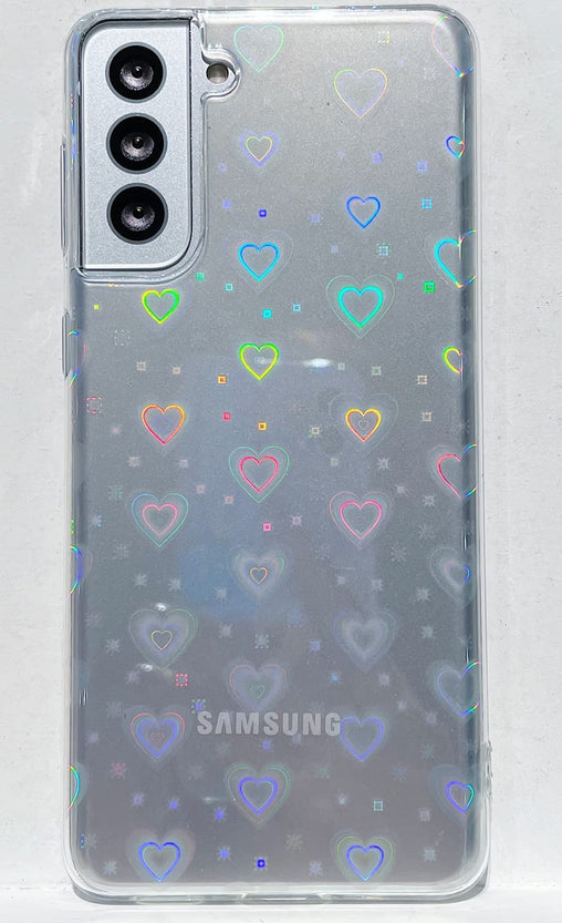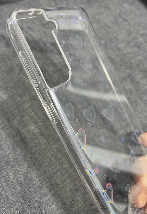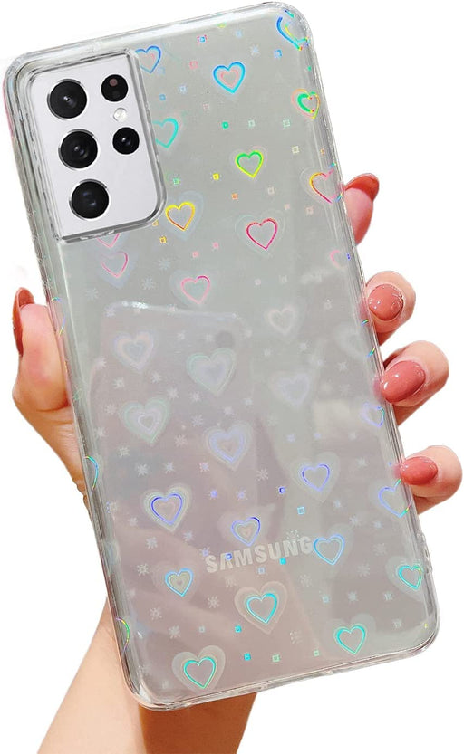 Galaxy S21 Plus Love Heart Pattern Clear Glitter Bling Heart Soft & Flexible Hard Case