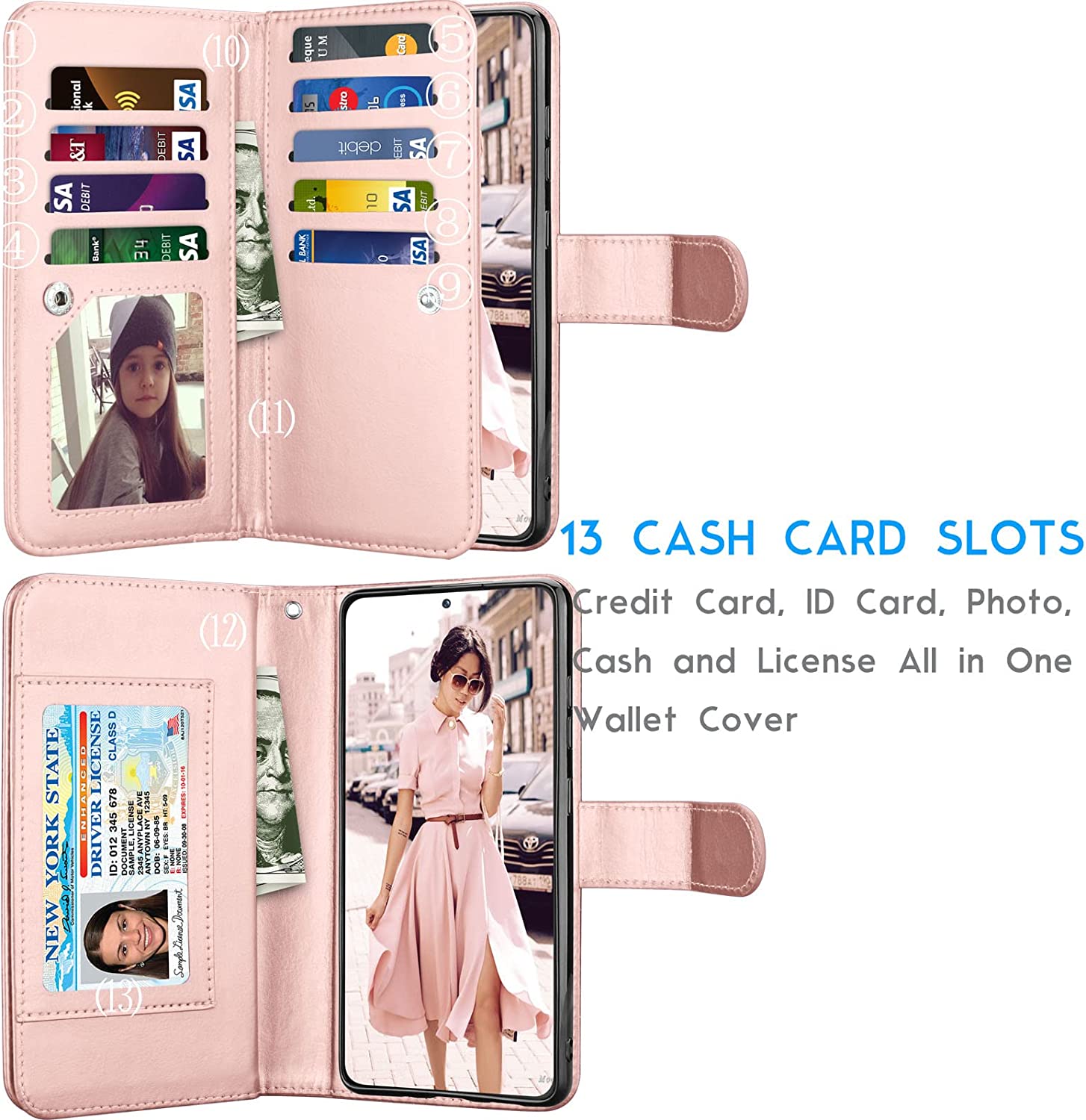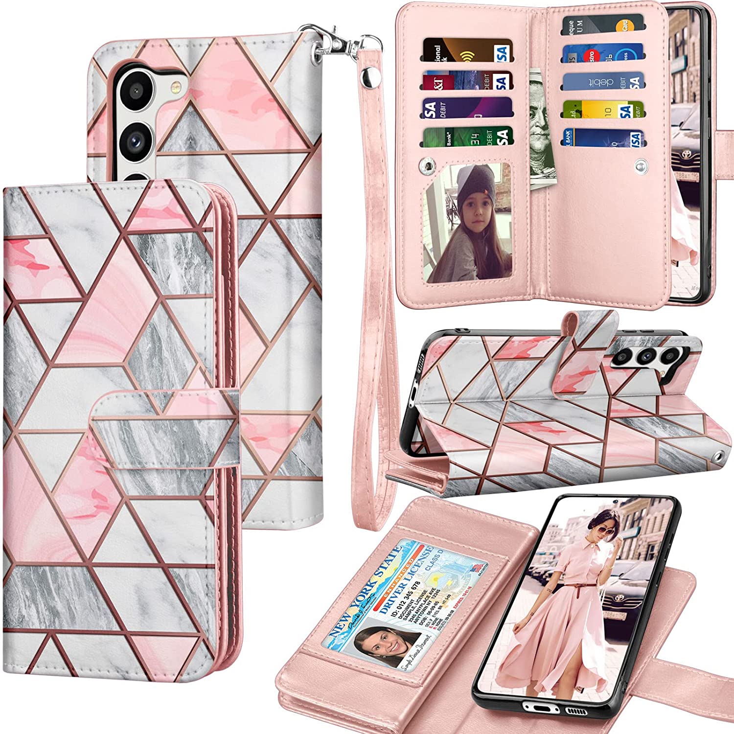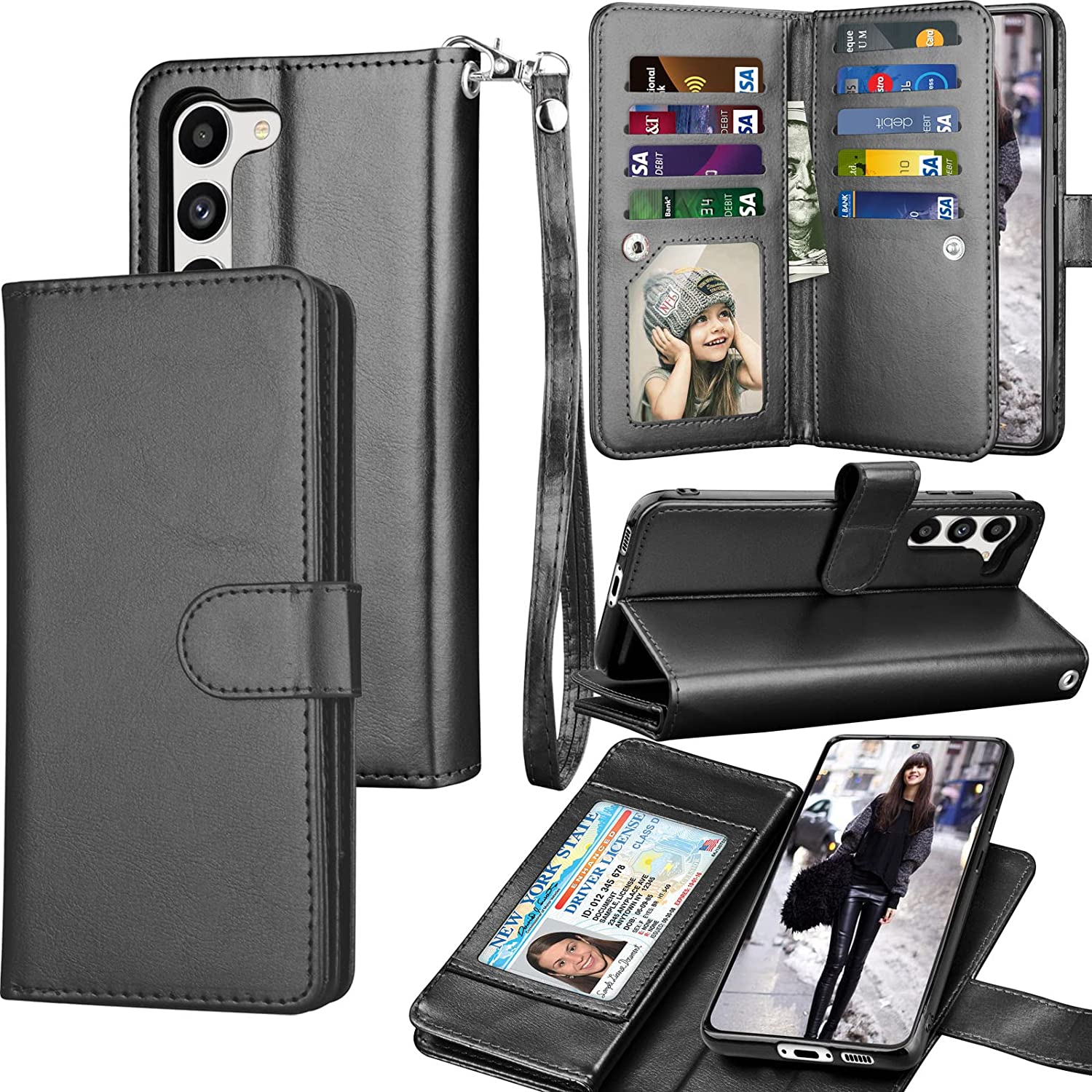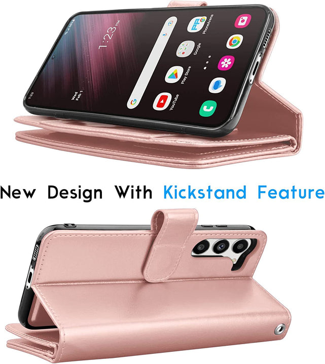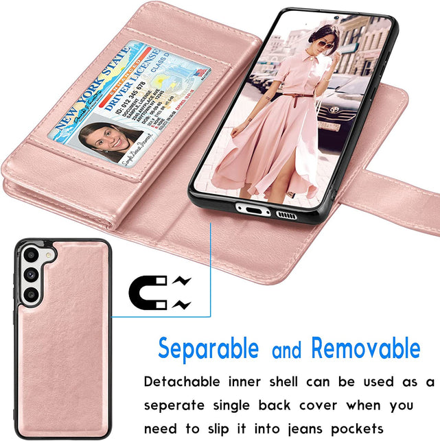 Galaxy S23 Leather Credit Card Holder Folio Flip Detachable Magnetic Case
