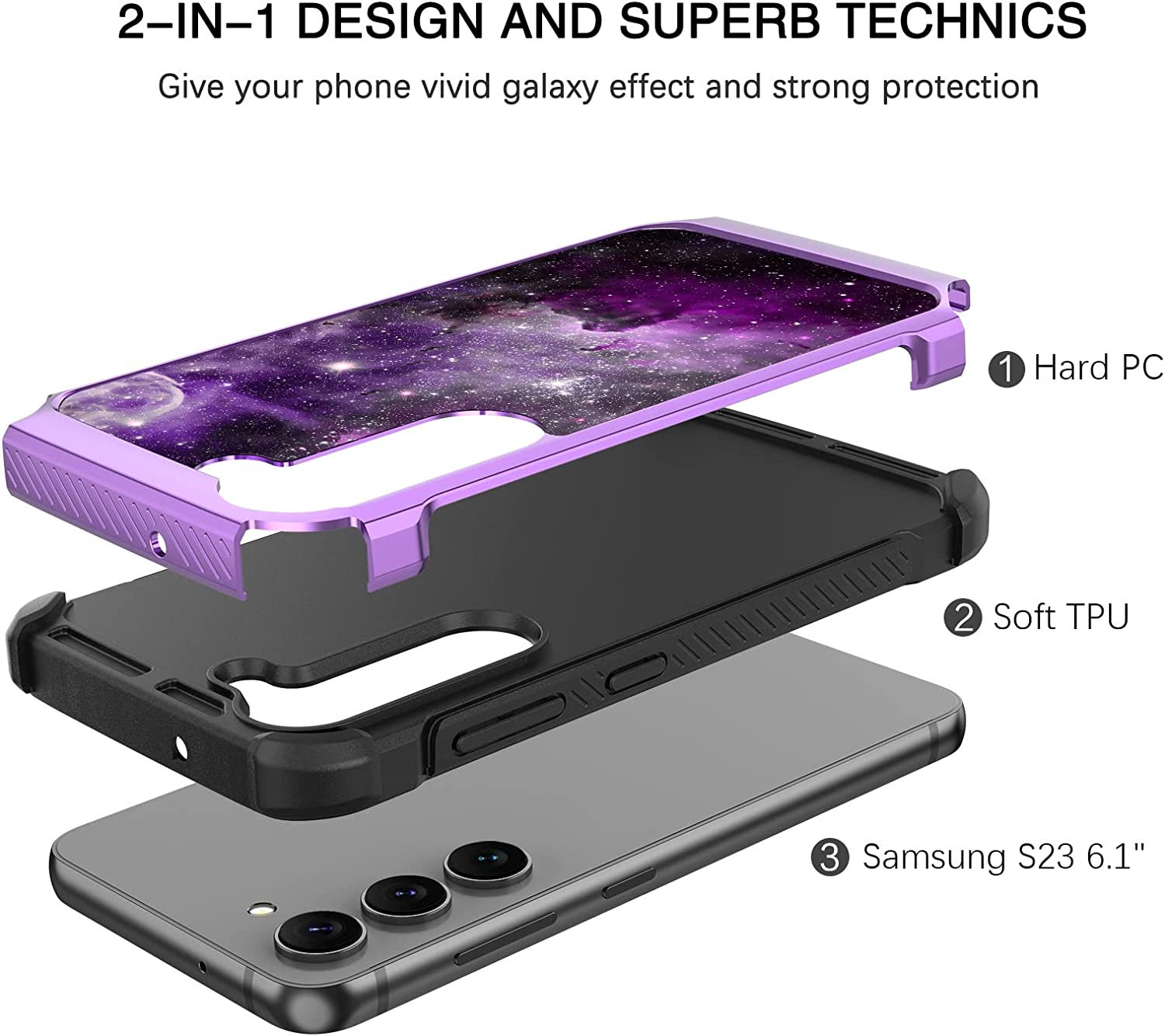 Galaxy S23 Slim Glow in The Dark 2 in 1 Hybrid Hard Bumper Nebula Space Case