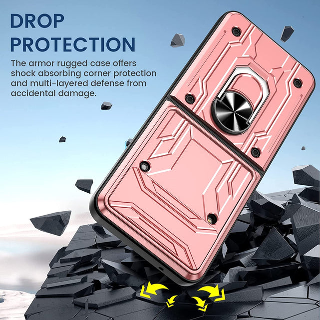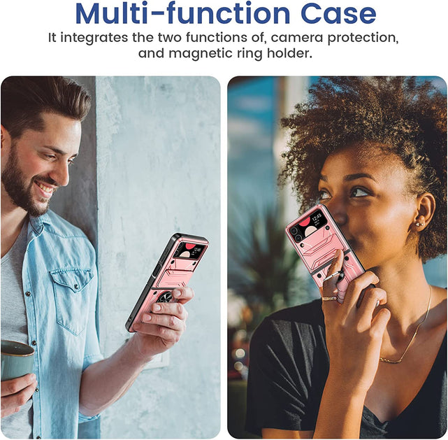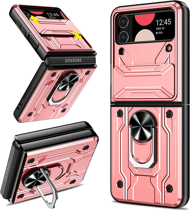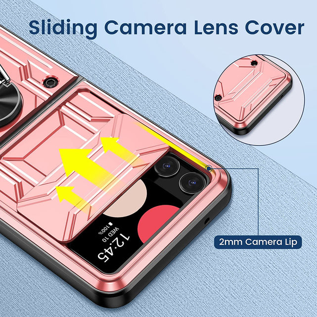 Galaxy Z Flip 4 Case with Kickstand, Slide Camera Cover Case - Rose Pink