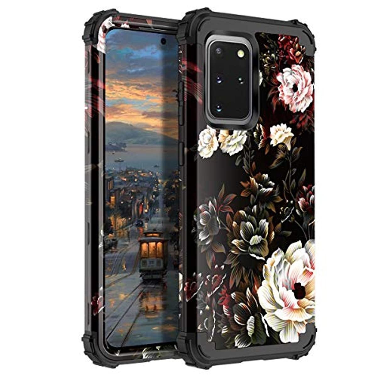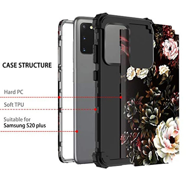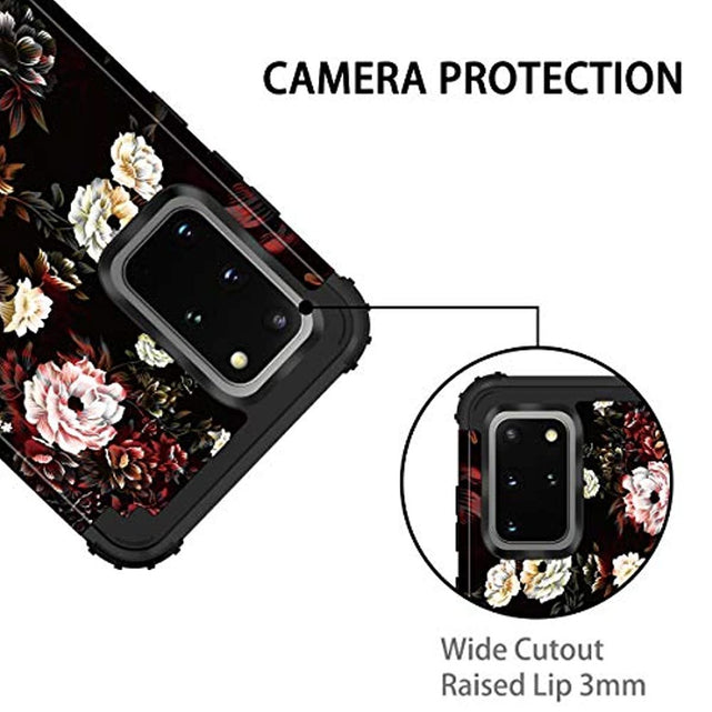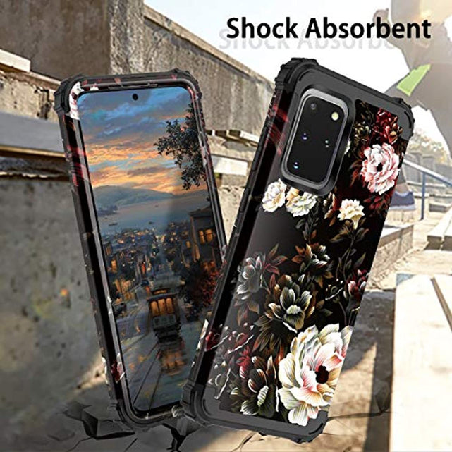 LONTECT Compatible Galaxy S20 Plus Case Floral 3 in 1 Heavy Duty Hybrid Sturdy Armor High Impact Shockproof Protective Cover Case for Samsung Galaxy S20 Plus 6.7 2020, White Flower/Black