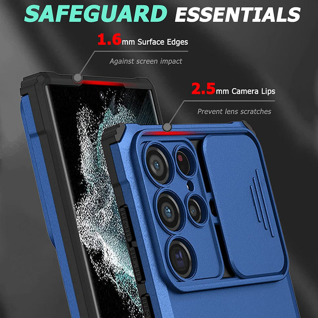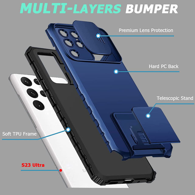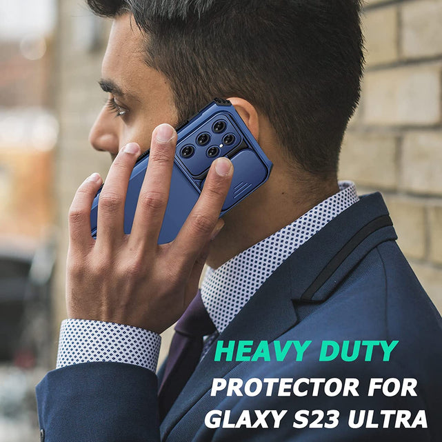 〖Slide Camera Cover Protection〗-Built in Sliding Camera Lens Cover,prevents camera lens from shock impact resistant,scratches and protect your personal privacy effectively. Raised bezel can protect your Samsung S23 Ultra phone lens from any damage.