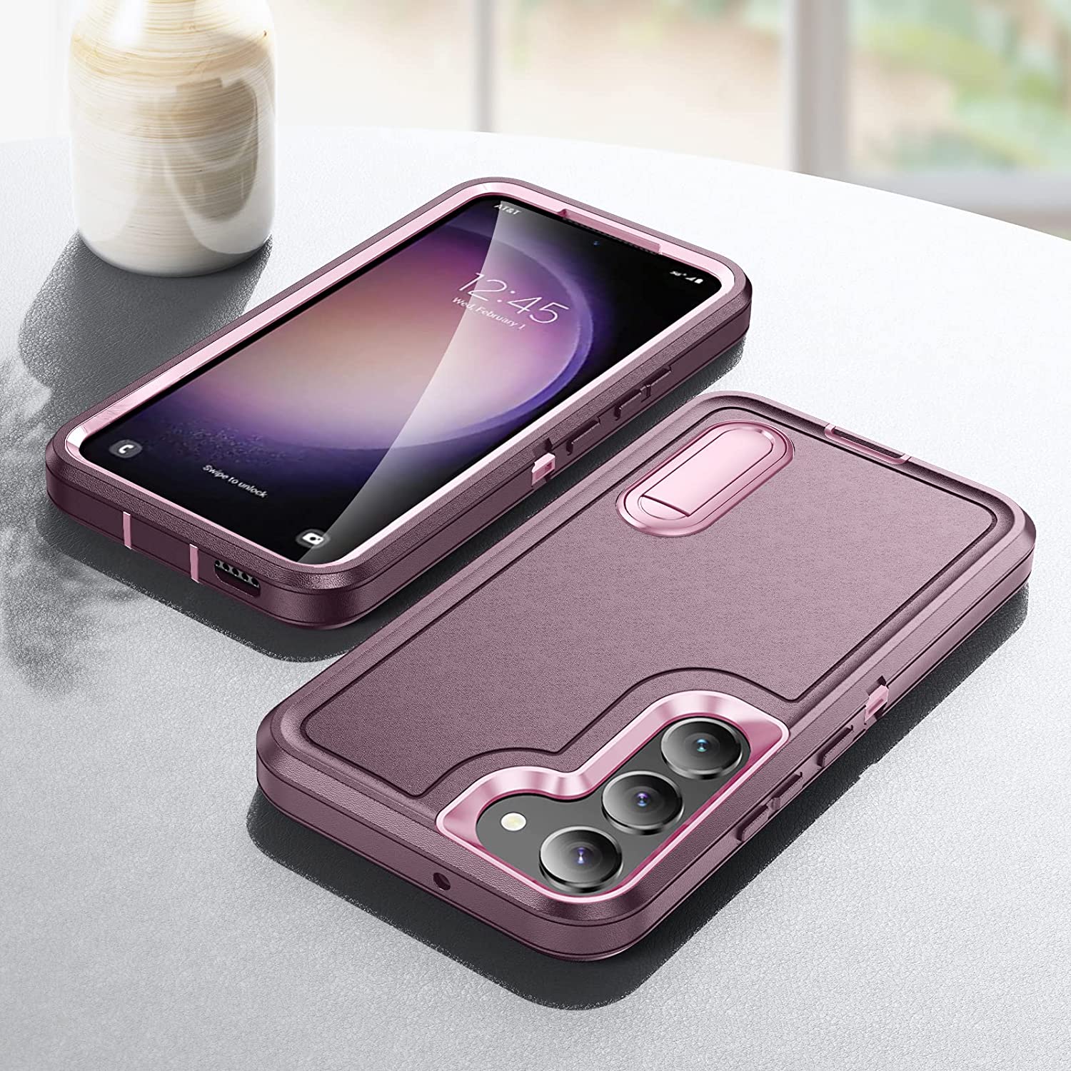 [Full Body Protection]: This three-in-one combination of military grade tough protection S23 5G Case, Hard PC + Solid inner polycarbonate shell soft cushioning rubber outer S23 Protection cover, Four-corner grooved airbags,unique shock absorption design,more comprehensive protection of the fragile parts for the smartphone.Raised lips keeps camera lifted to prevent your lens from shock,collision and scratch.Dust Protection port plugs lock out dust, dirt so your device stays clean and debris free