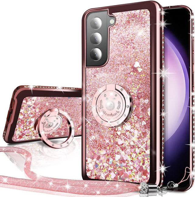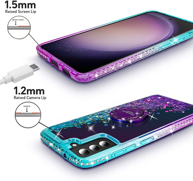Samsung Galaxy S23 Moving Liquid Holographic Sparkle Glitter Kickstand Diamond Ring Case