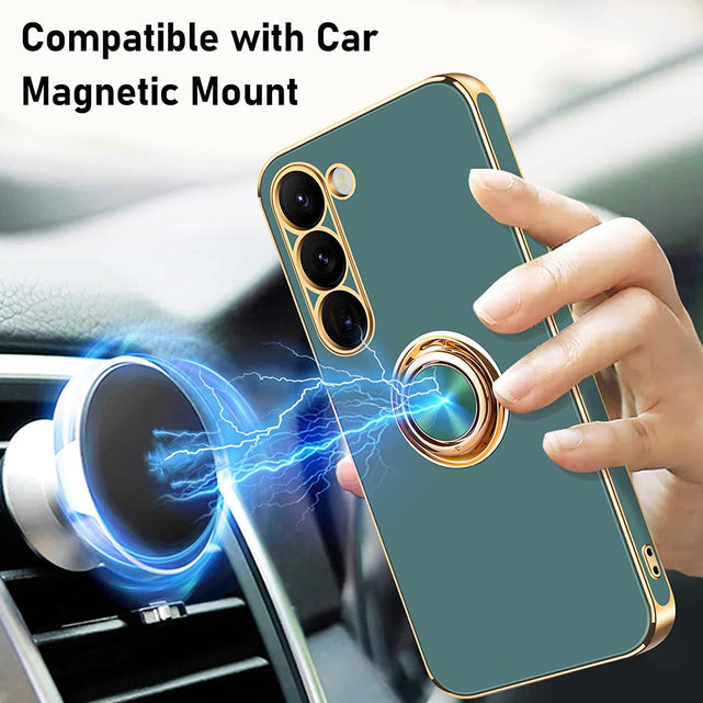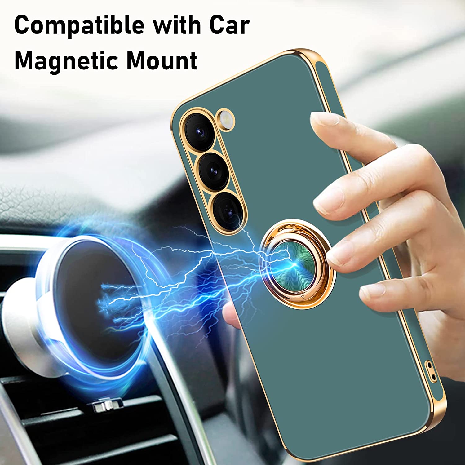 【Adjustable Ring Holder Kickstand】: This Galaxy S23 Case comes with a convenient adjustable sturdy ring holder which can rotate 360 degrees horizontally and 180 degrees vertically for easy safe carrying. Built-in kickstand free your hands to watch videos and movies. NOTE: due to the metal kickstand, this case NOT compatible with wireless charging.