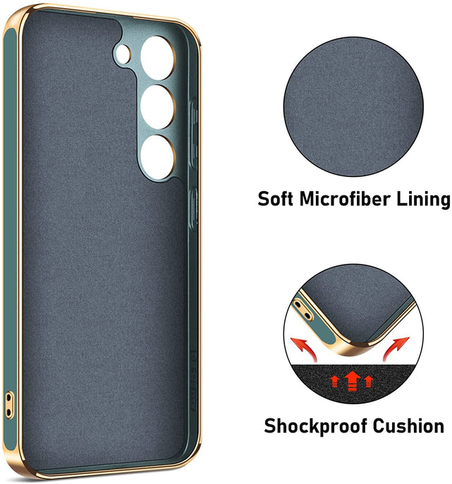 【Plated Edge & Microfiber Lining】: Soft microfiber lining of Galaxy S23 phone case protects the back of your phone scratch-free. The gold electroplate edge design makes your phone luxury and elegant.