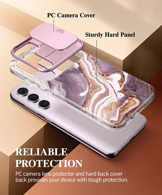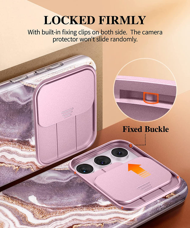 [Slide Camera Cover Design] This GVIEWIN S23 phone case provides dual protection for your fragile but expensive camera lens thanks to the upgraded sliding camera lens cover and raised lip around the camera. The fixed clips at both sides allow a firmer lock that ensures the camera protector won't slide freely or loose.