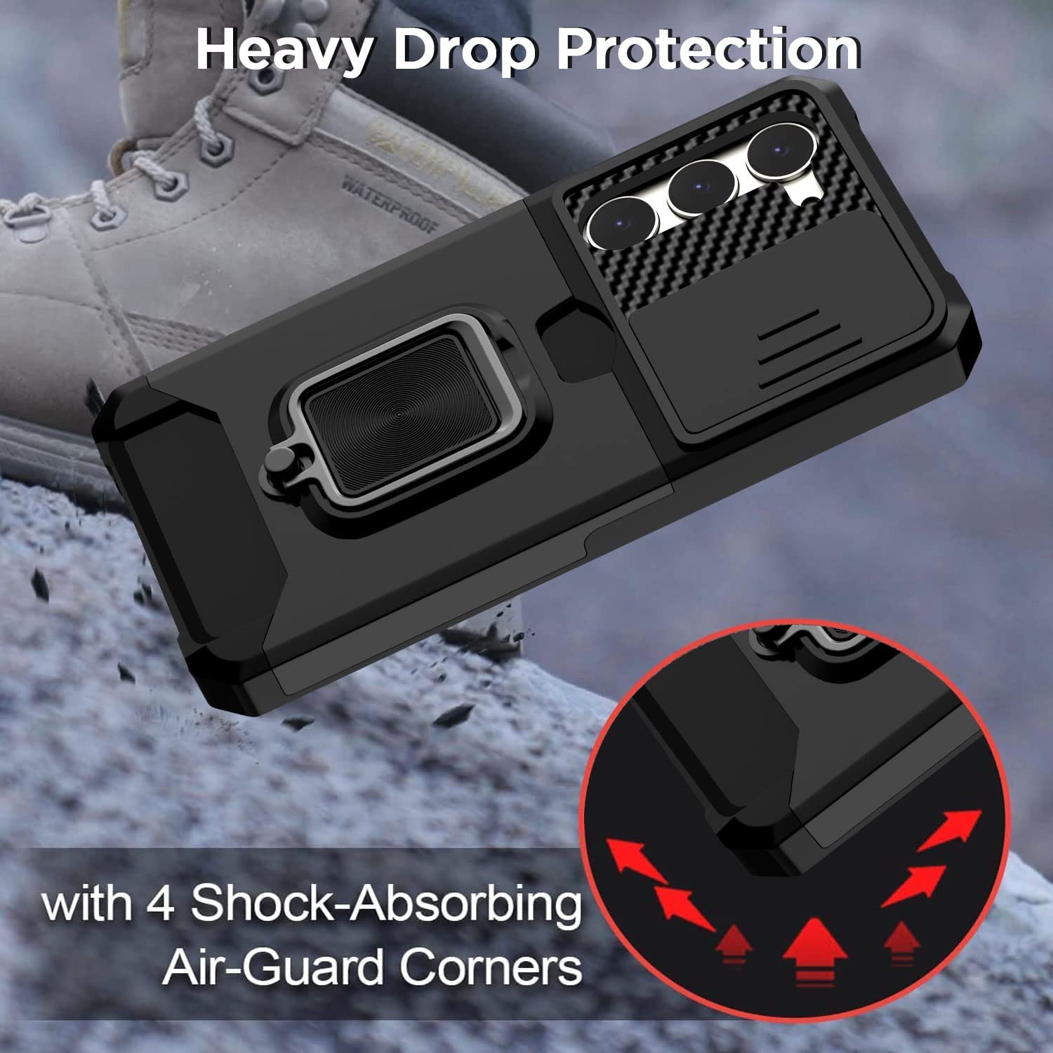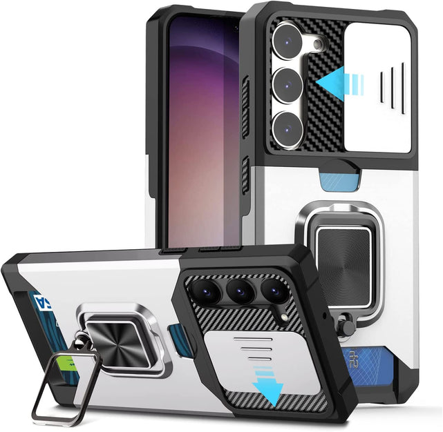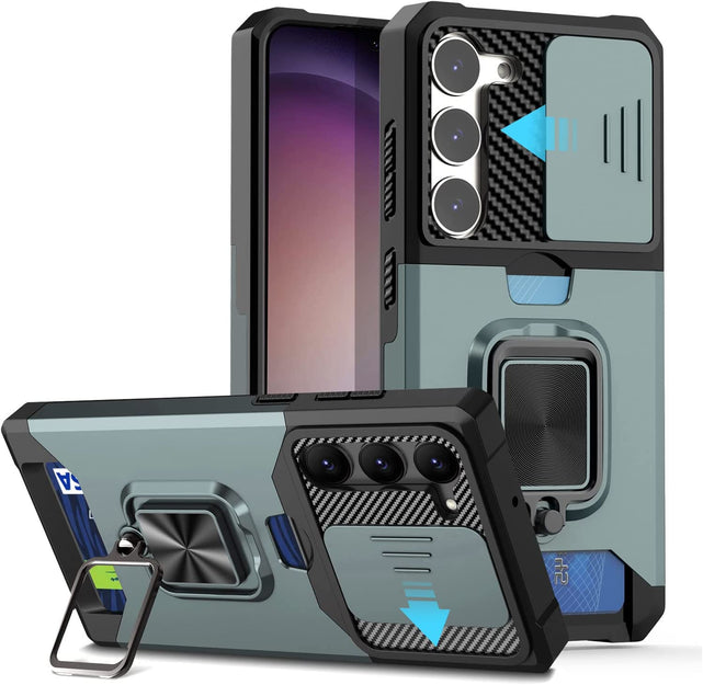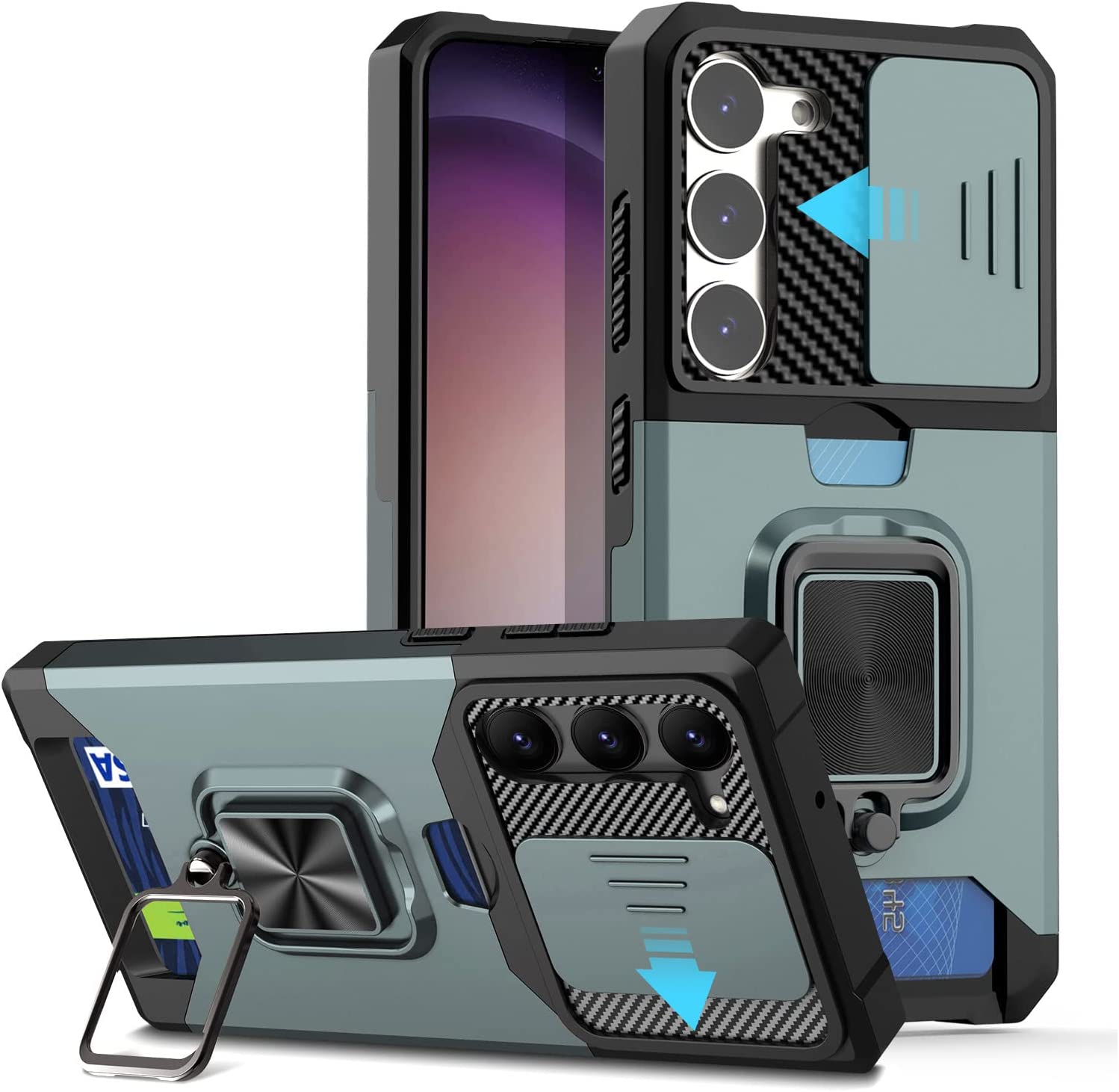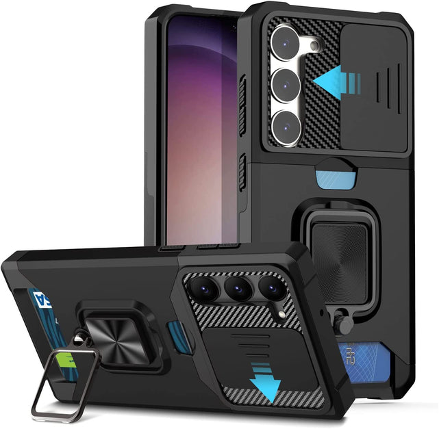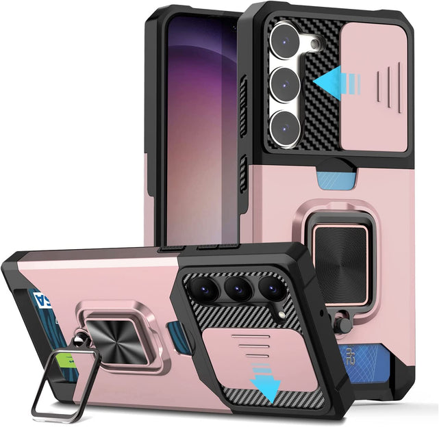 Samsung Galaxy S23 Slide Camera Cover Ring Kickstand & Card Holder Heavy Duty Case