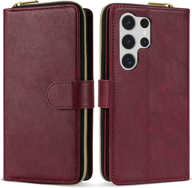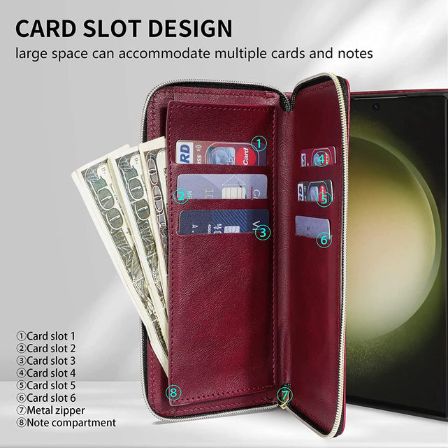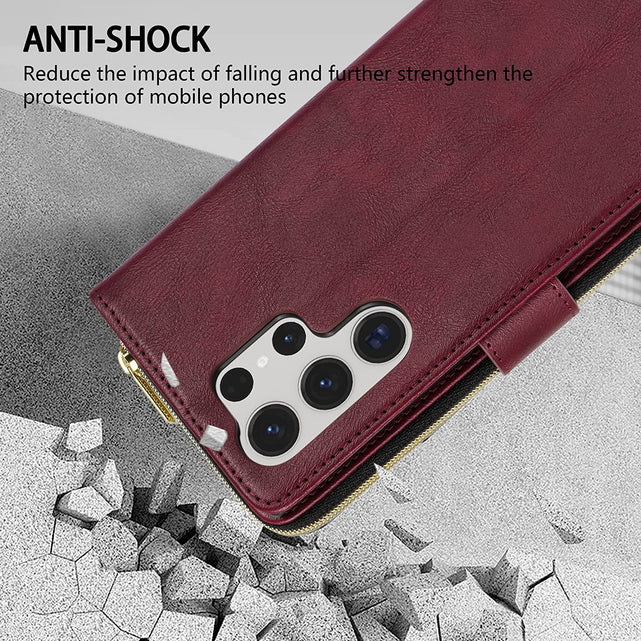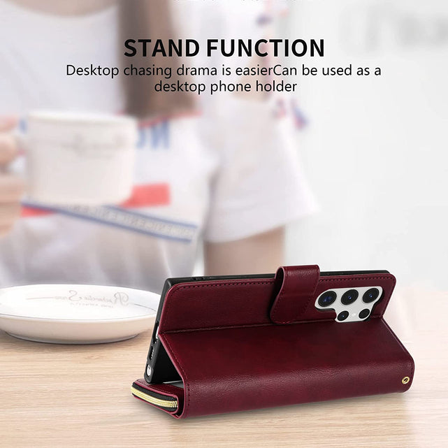 Samsung Galaxy S23 Ultra 9 Card Slots Zipper Stand Flip Leather Wallet Case