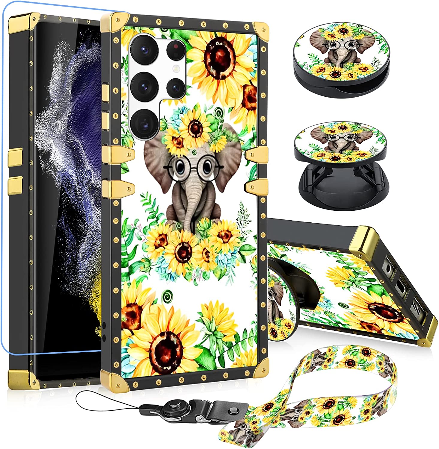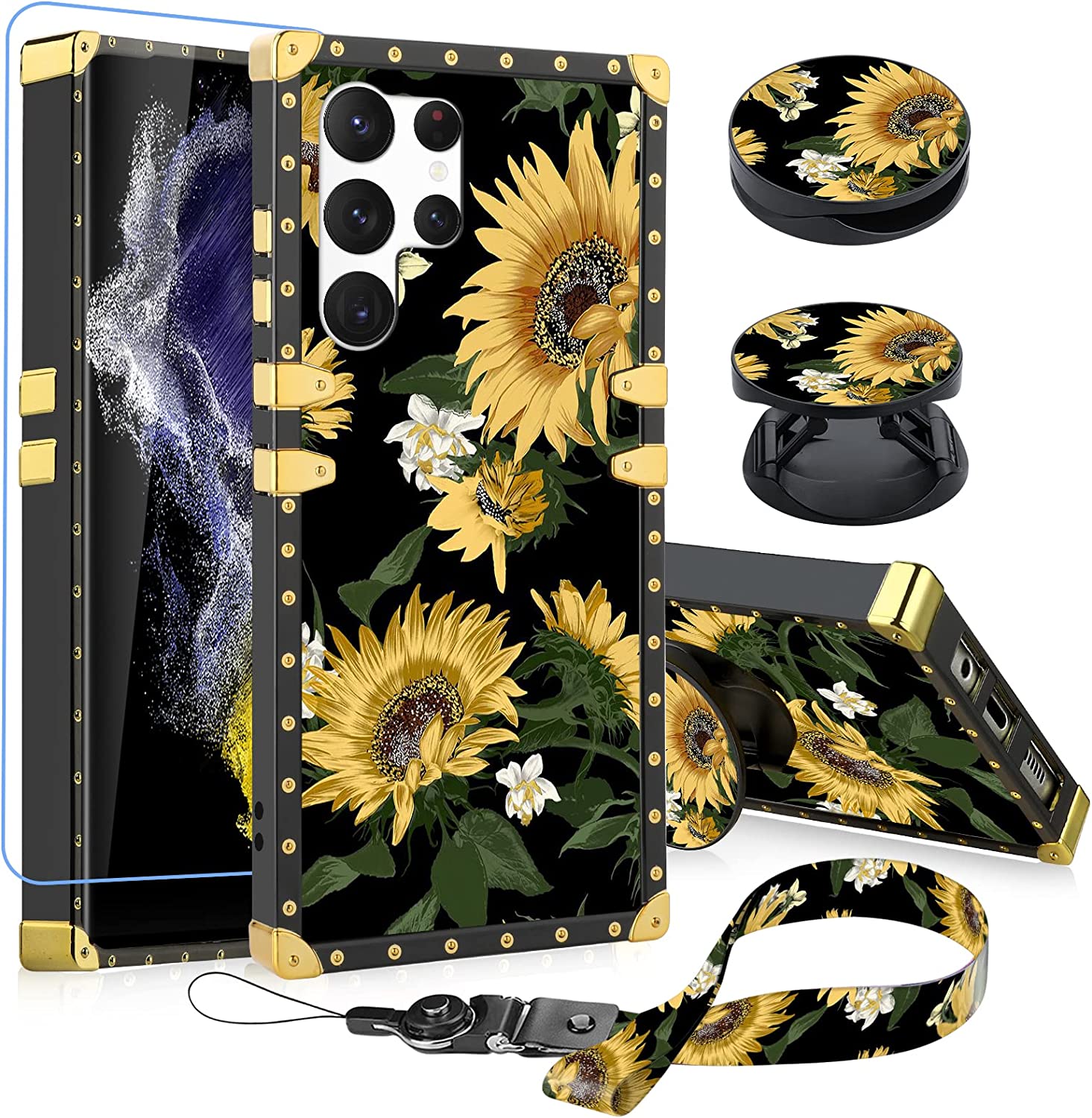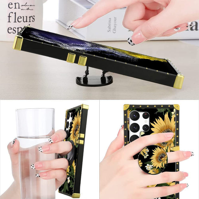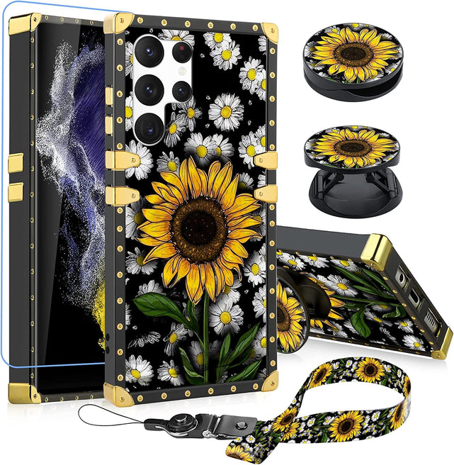 Samsung Galaxy S23 Ultra Square Sunflower Ring Holder Kickstand Case