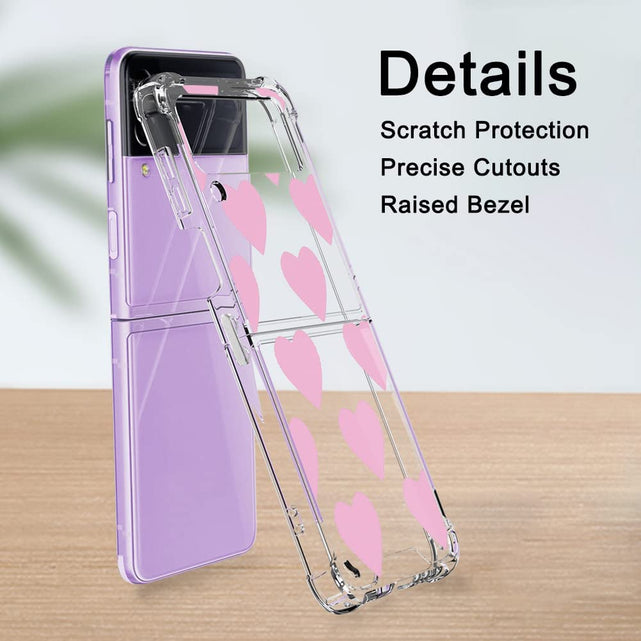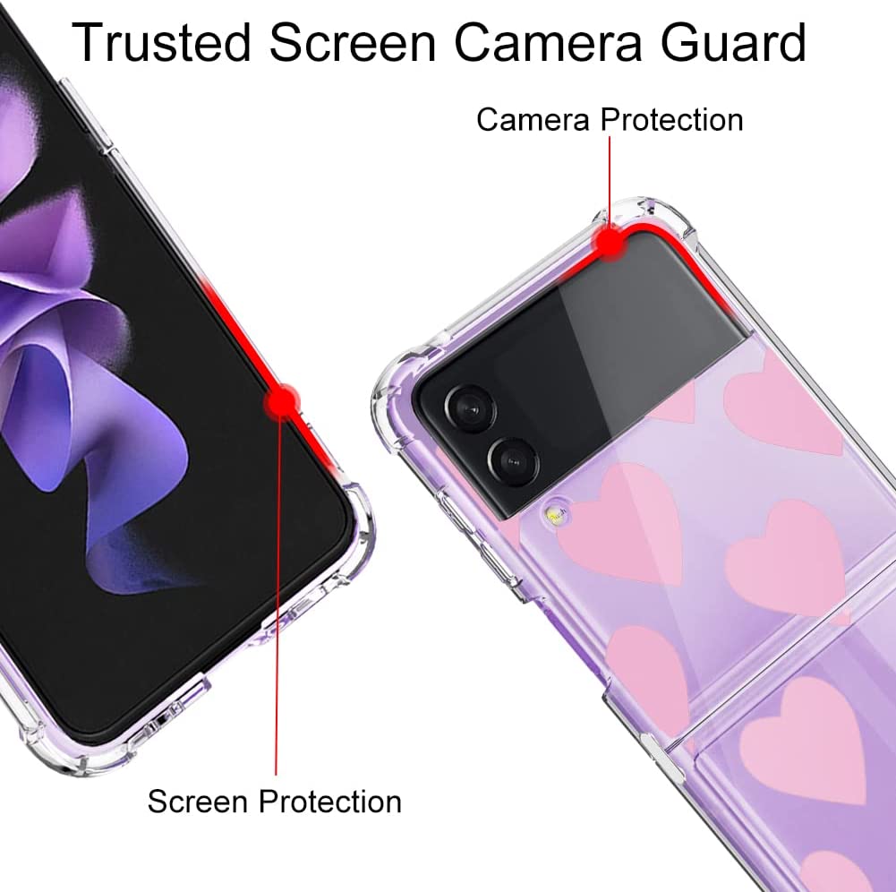 - [Clear Pink Heart Design] Clear with pink heart design make your galaxy Z flip 3 look so cute and keep your phone original.