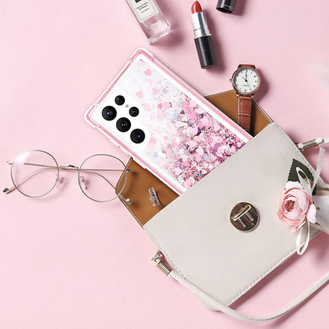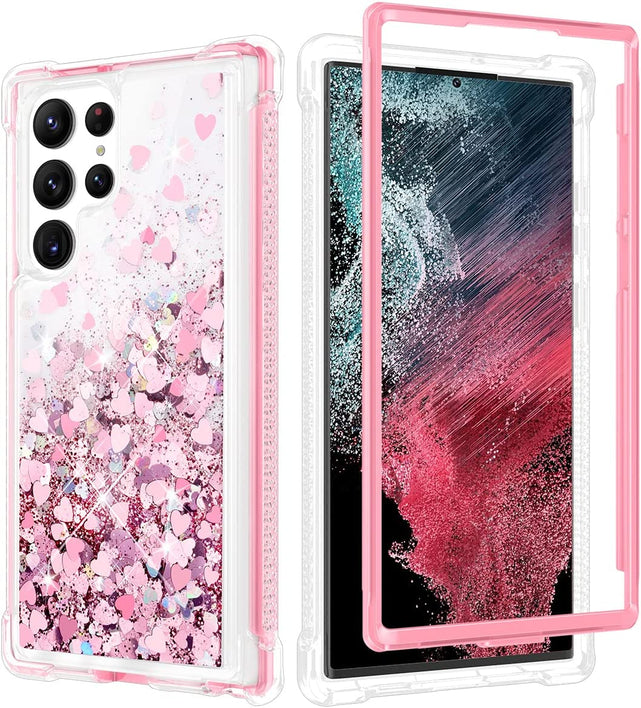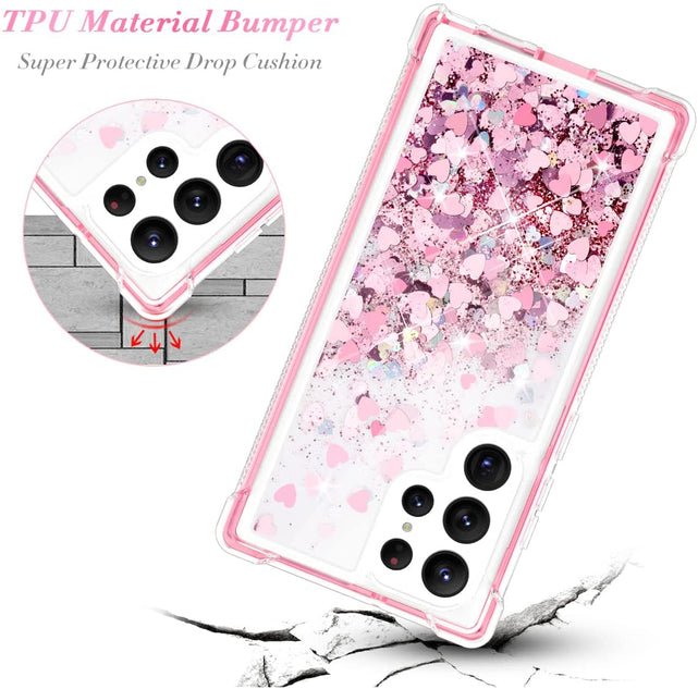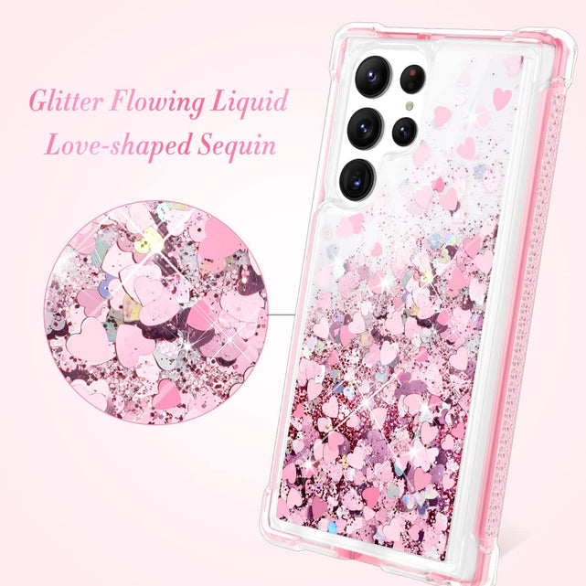 • ❤[Sparkle Flowing Galaxy S22 Ultra Case] This Galaxy S22 Ultra glitter liquid phone case makes the bling love-shaped sequins move freely, just like the stars floating in the water, will not only beautiful but also bring much fun to you and your friends or family.