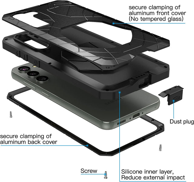 What You Get-- Package included: for Samsung Galaxy S23 Plus 2023 Metal phone case, spare screws, screw driver. Service & Warranty: If there are any non-artificial product issues about our cases, we will send you a NEW metal case FREE or Refund completely! If there are any problem, Please feel free to contact us any time.
