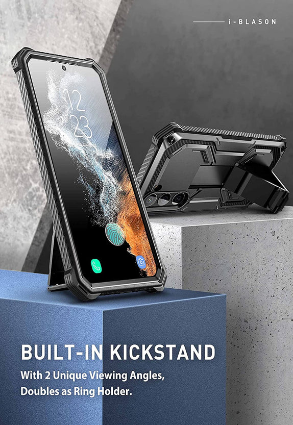 Galaxy S23 Plus Kickstand & Belt Clip Holster Full Body Built In Screen Protector Rugged Bumper Case