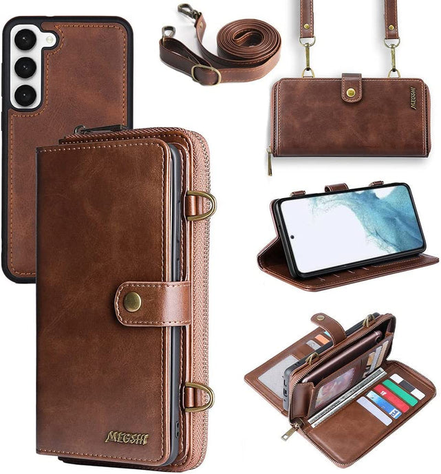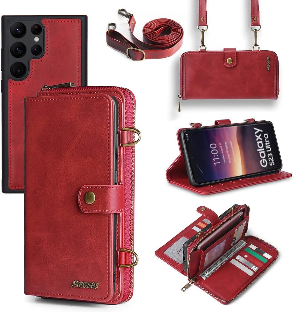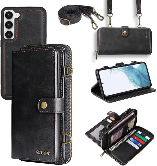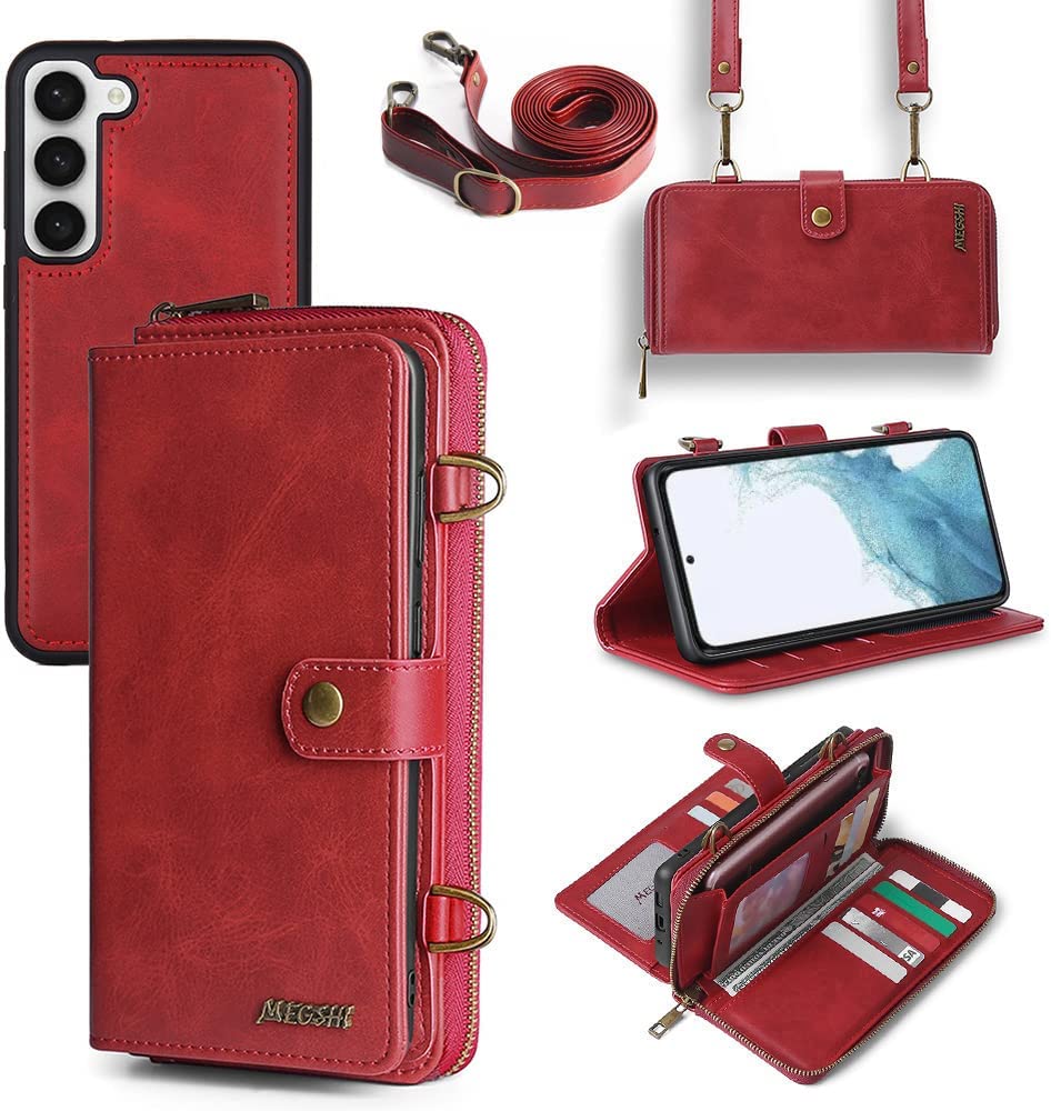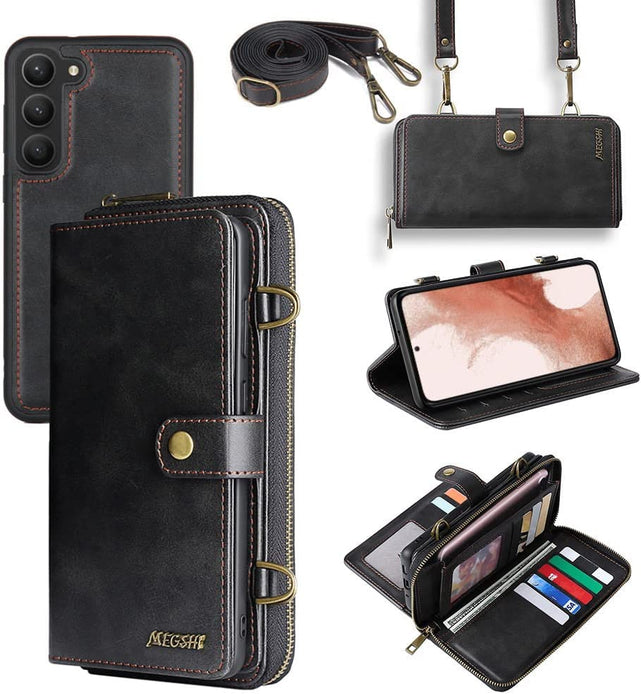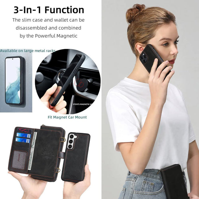 Galaxy S23 Plus Wallet Leather Magnetic Detachable Crossbody Wallet 12 Card Holder Zipper Flip Case Woman/Girl