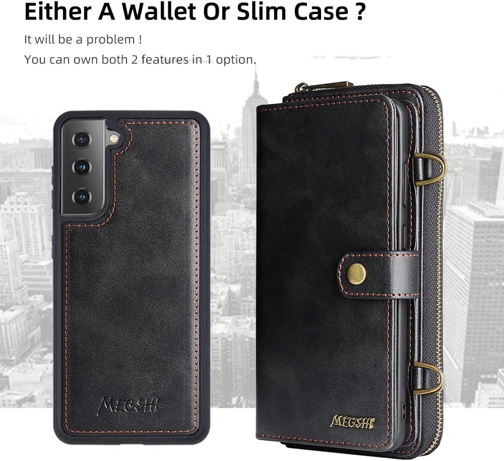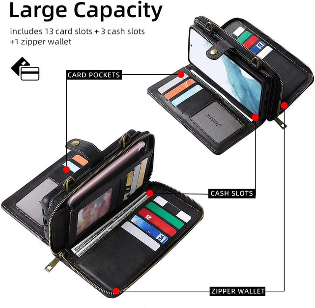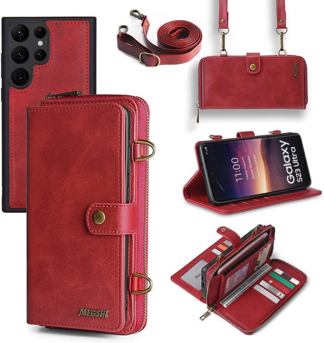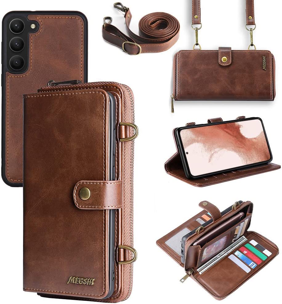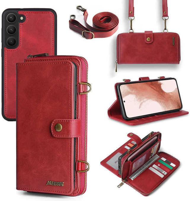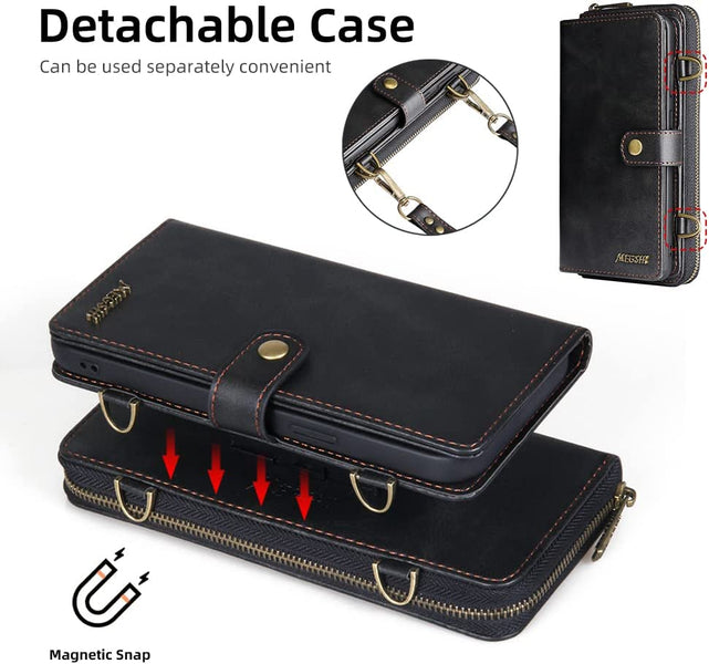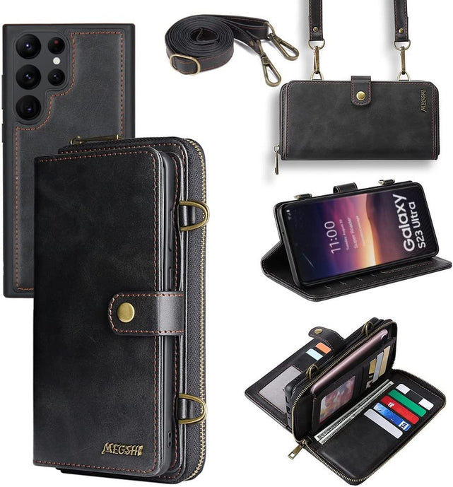 Galaxy S23 Plus Wallet Leather Magnetic Detachable Crossbody Wallet 12 Card Holder Zipper Flip Case Woman/Girl