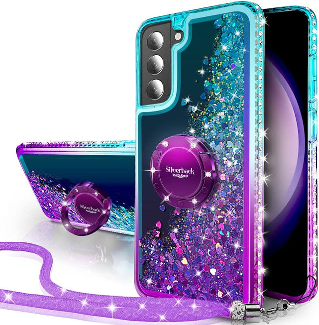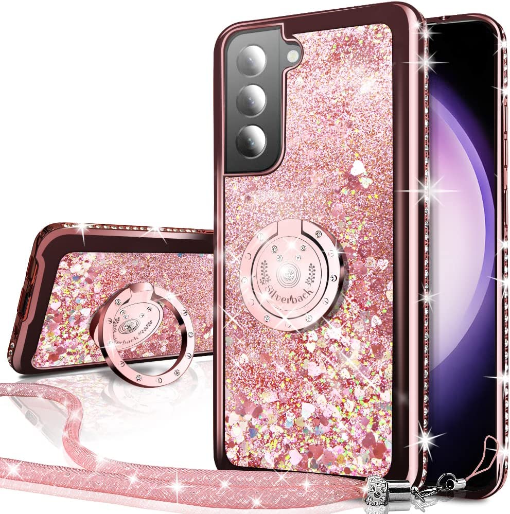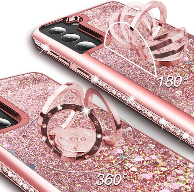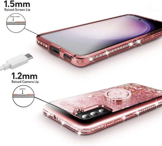 Samsung Galaxy S23 Plus Moving Liquid Holographic Sparkle Glitter Kickstand Ring Case