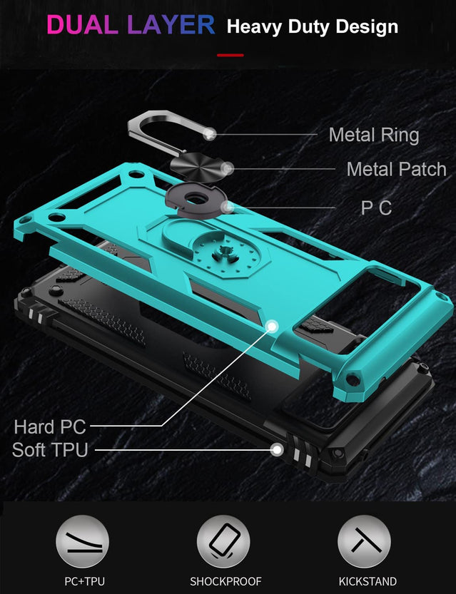 - [ROTATING KICKSTAND] - This built-in metal ring stand can rotate 360°, easy to rotate and sturdy on the case, gives you the convenience to watch videos and movies hands-free with desired comfort and stability. It also can be attached to the magnetic car holder. It is convenient for you to navigate the route when driving.