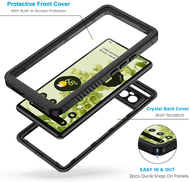 - High Touch Responsive : Built-in HD plastic screen protector prevents scratches, damage and dirt, also won't affect the touch sensitivity or clarity; Clear back cover will show off the beauty of your Google Pixel 6.