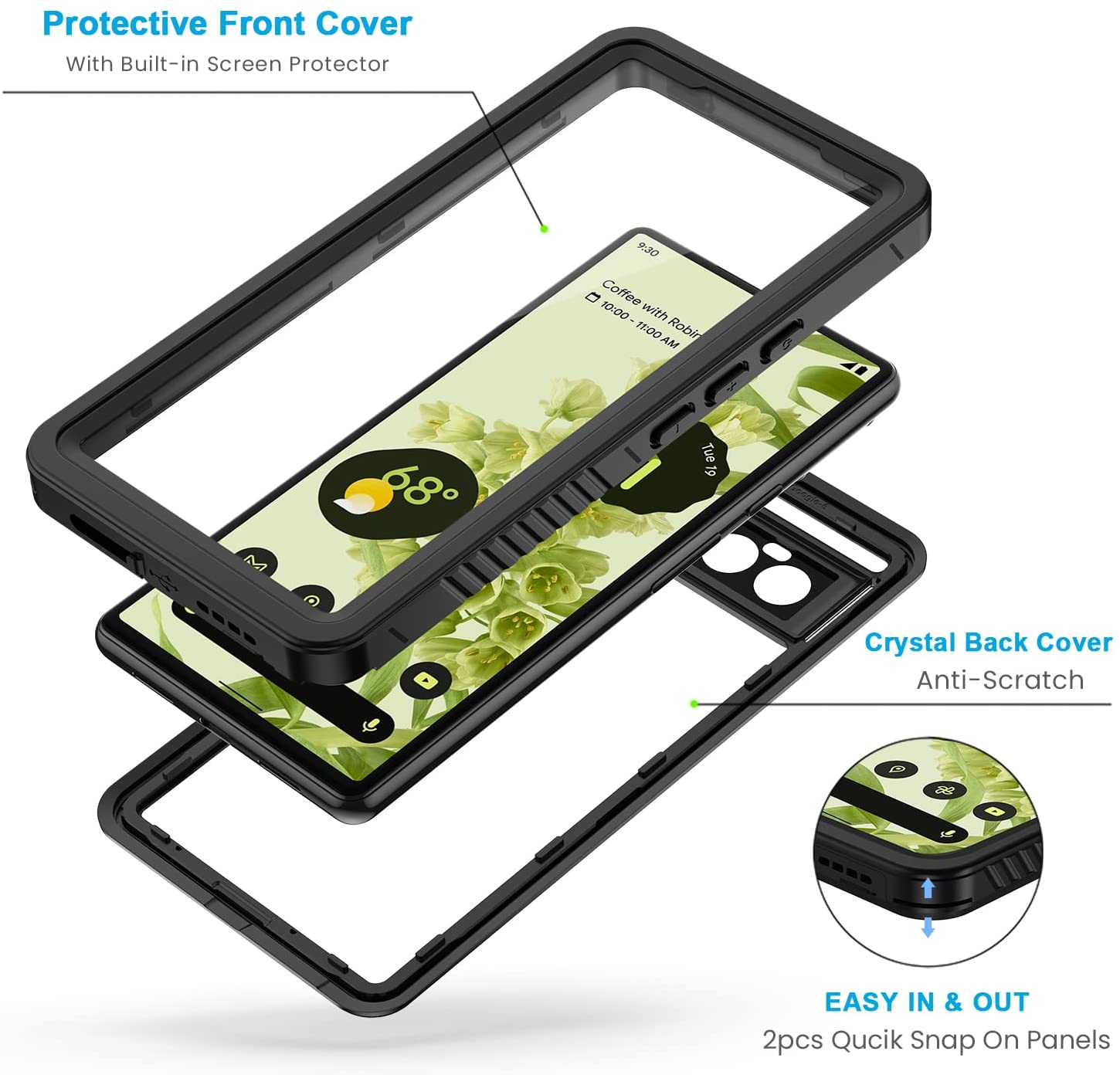 - IP68 Certified Waterproof : Perfect waterproof case compatible with Google Pixel 6 5G (6.4 inch), extreme safe even after 1000 times test of using underwater 6.6ft for 1 hour. NOT for Pixel 6 Pro (6.71 inch).
