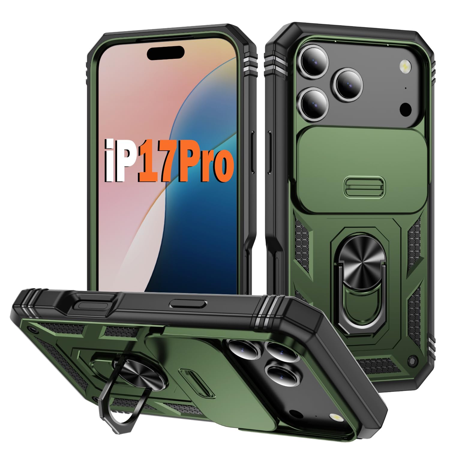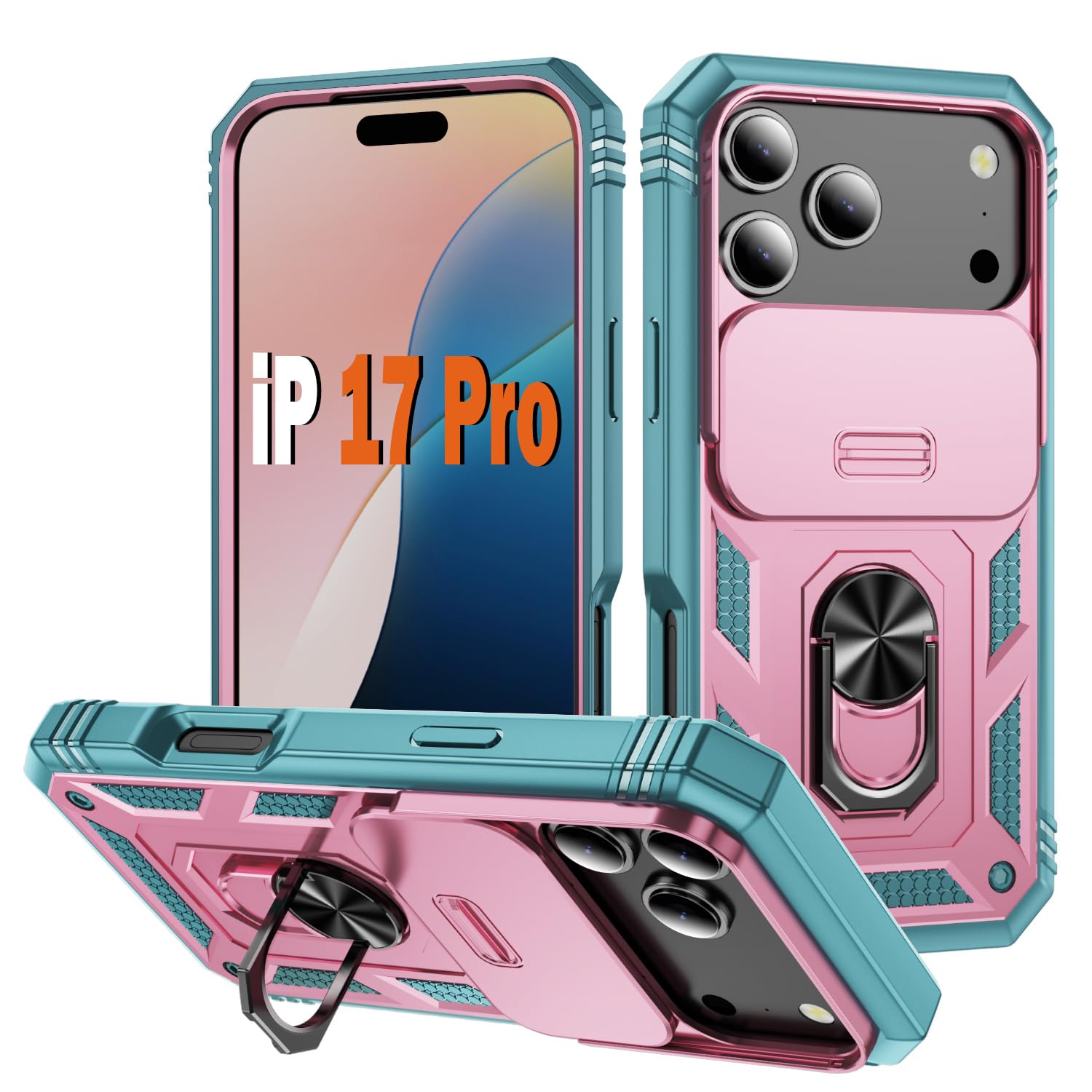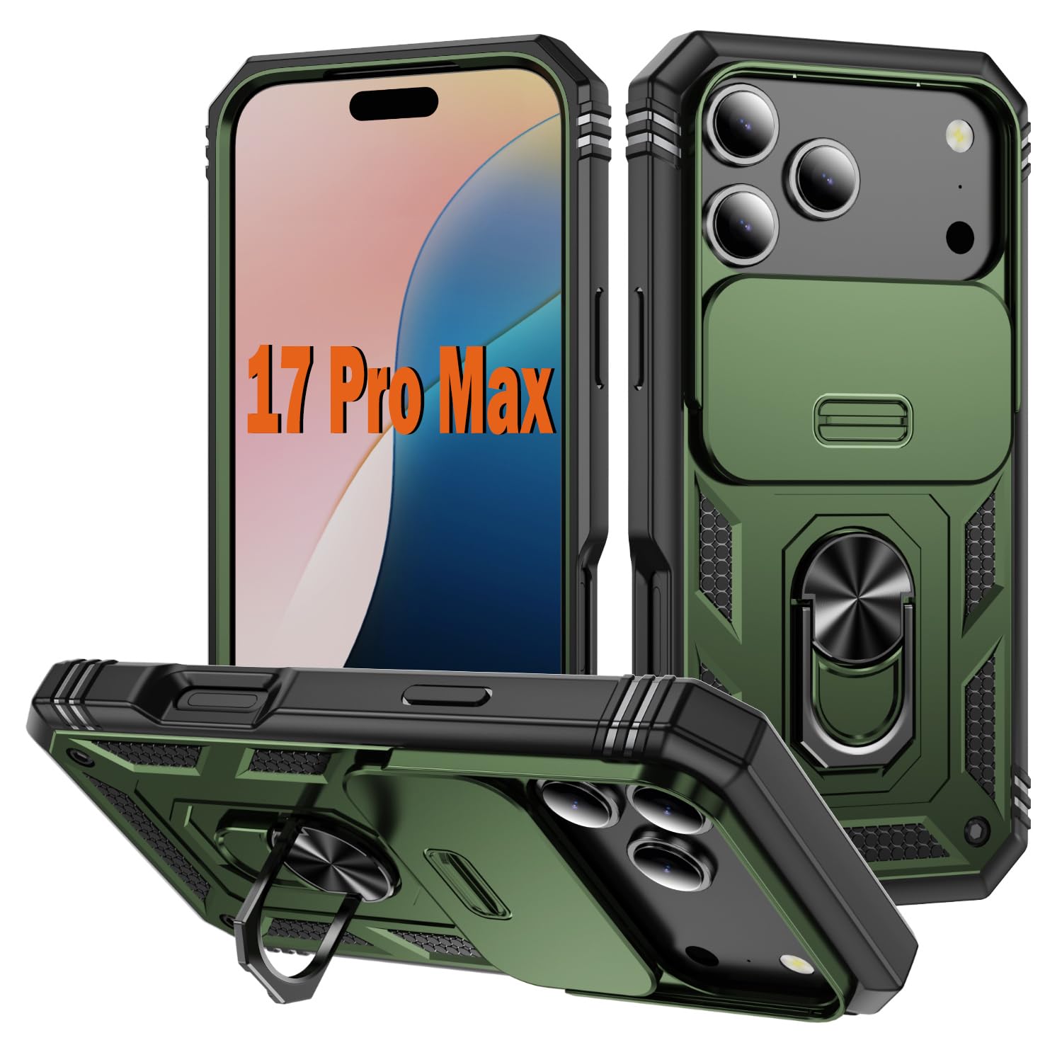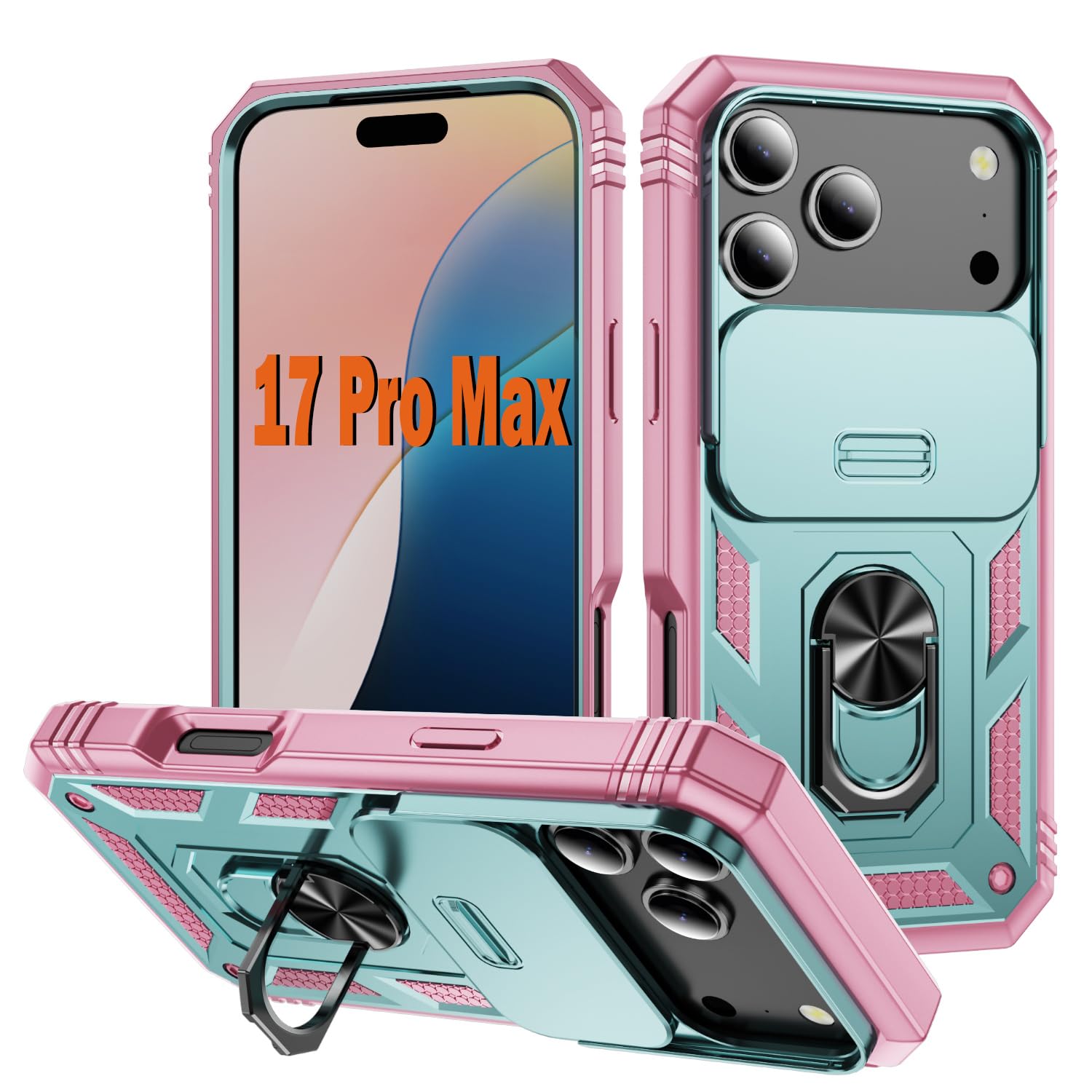 - 【Ring Case for iPhone 17 Pro Max】The Kickstand can rotated 360°,Horizontal and vertical viewing support, easy to use. The Kickstand will not slide out when closed. The Kickstand is sturdy enough and perfect for everyday use. Kickstand does not interfere with camera use. Doesn't interfere with any of the features,The Stand is not removable.Not recommended for use with magnetic car mounts.