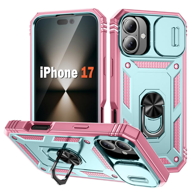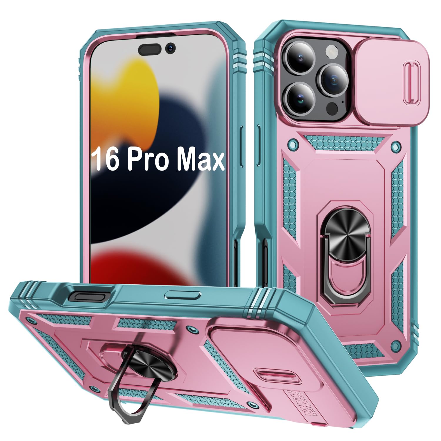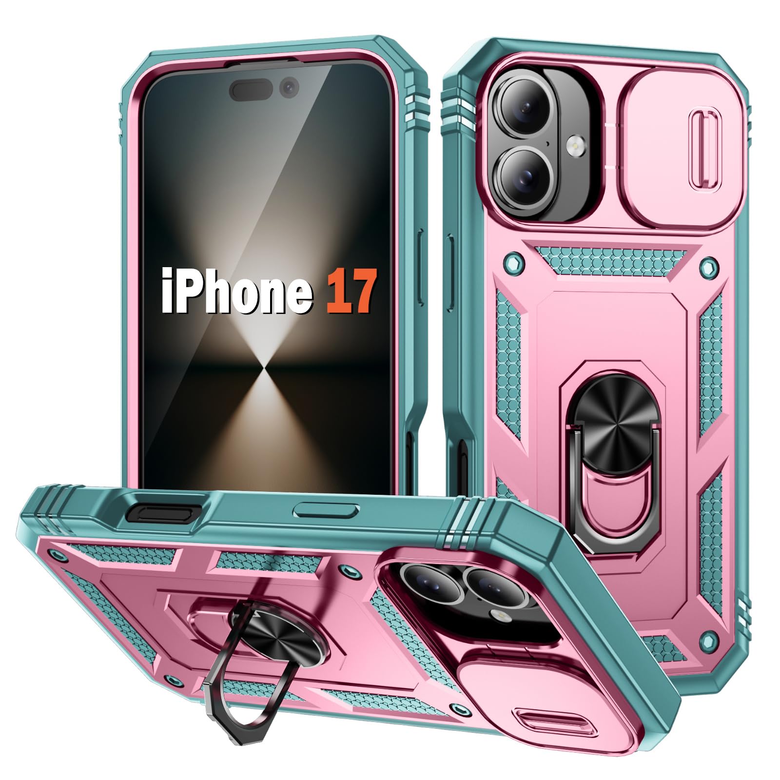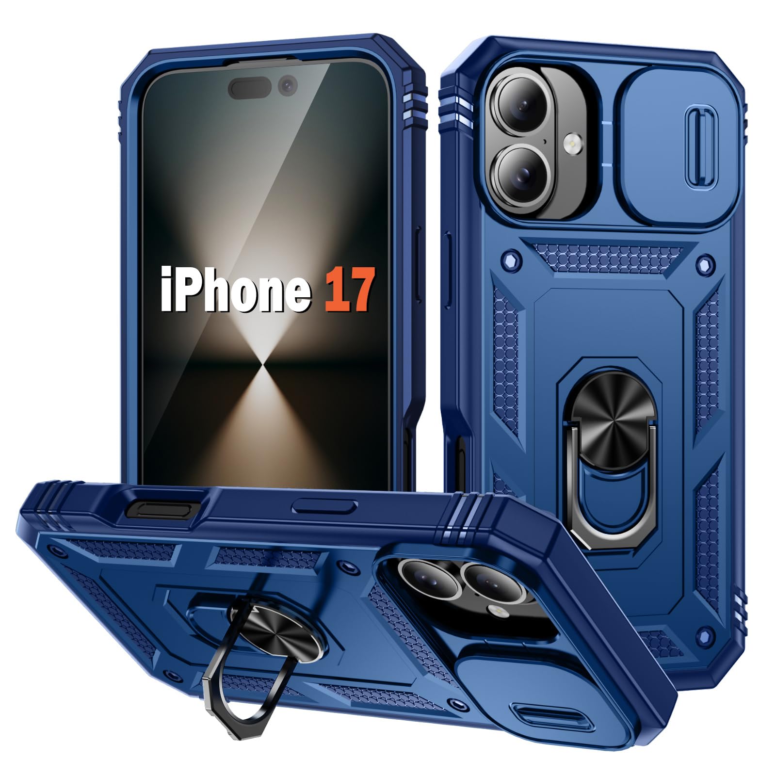 - 【Ring Case for iPhone 17 Pro Max】The Kickstand can rotated 360°,Horizontal and vertical viewing support, easy to use. The Kickstand will not slide out when closed. The Kickstand is sturdy enough and perfect for everyday use. Kickstand does not interfere with camera use. Doesn't interfere with any of the features,The Stand is not removable.Not recommended for use with magnetic car mounts.