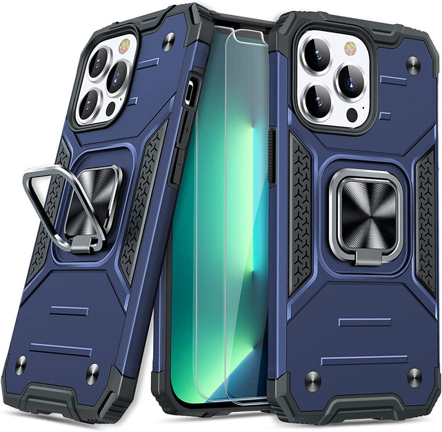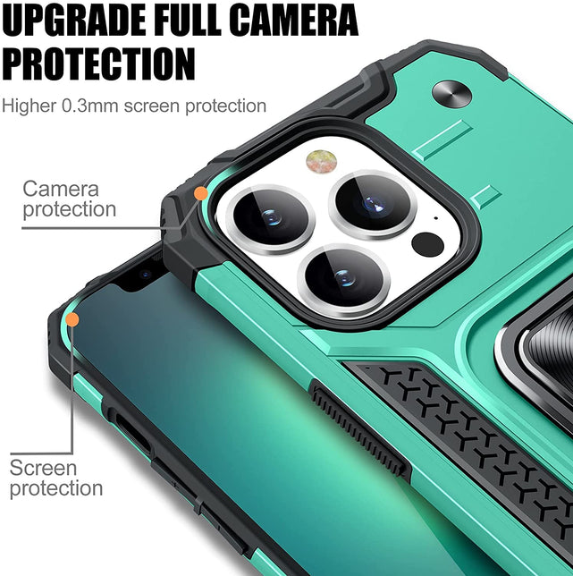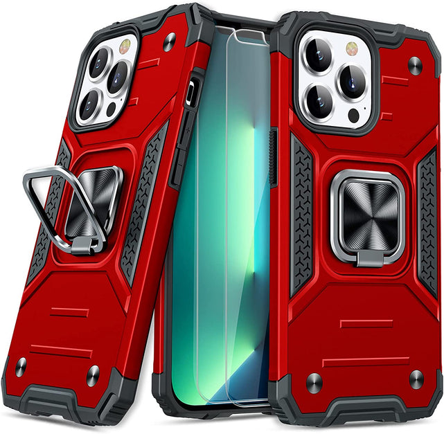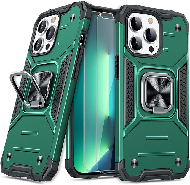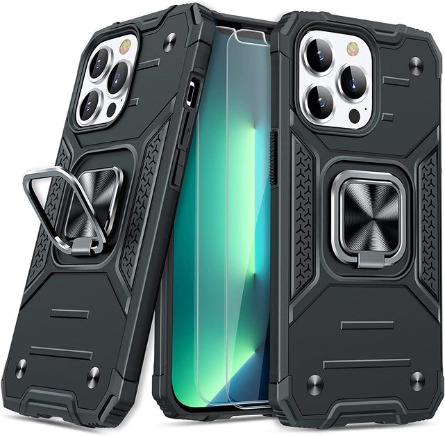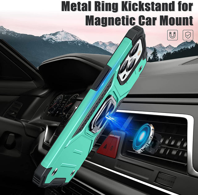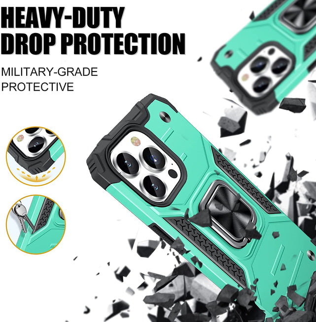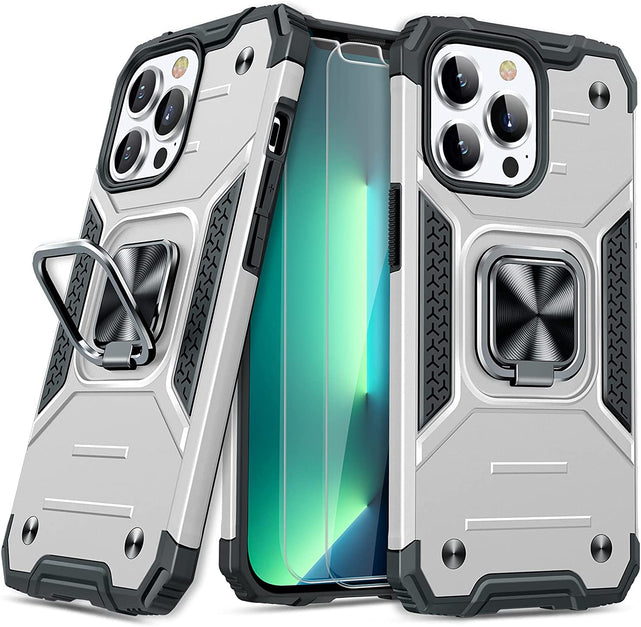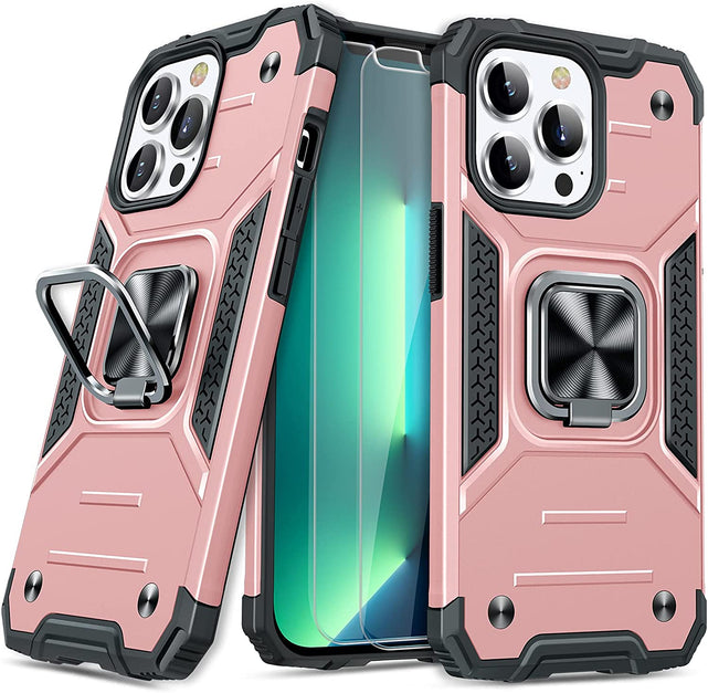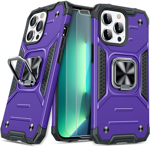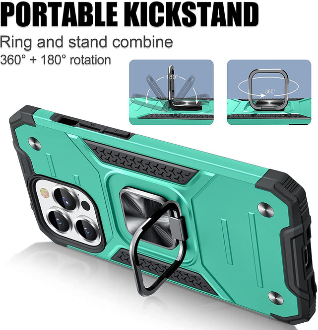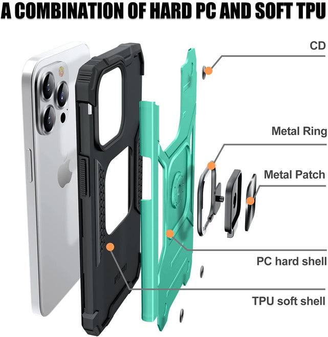 - 【2021 INVISIBLE ROTATION RING KICKSTAND】-Built-in invisible rotation kickstand for iPhone 13 Pro phone case, which can rotate to any angles in 360°horizontal + 180°vertical, provides more convenience in our daily life, watching TV programs, streaming, kitchen, working, reading, fitting and more. Totally invisible design is perfect for carrying in our hands, bags or paints.【Metal Ring Kickstand also works greatly with magnetic car phone mount】.