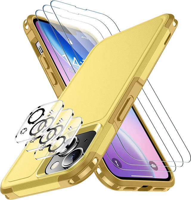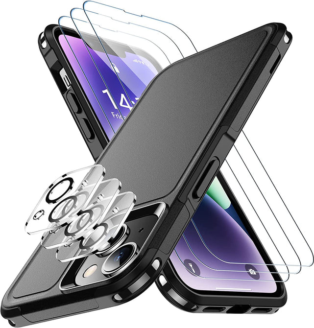 - ❤️🔥❤️🔥【Full Protection】Passed Military Drop Tested up to 10 FT. 2-Layer structure provides 360°full body rugged protection. The iPhone 14 case is made with flexible rubber inner cover and hard polycarbonate back cover, provides good shockproof and anti-drop damage protection. Plus 3 tempered glass screen protectors with high touch sensitivity prevent scratches and cracks and 3 camera protectors protects the phone camera.