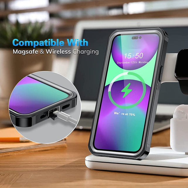 - ➤ [9H Tempered Glass Screen Protector] Built-in 9H tempered glass screen protector together with 2 packs free camera lens protector, this phone case for iPhone 14 Pro Max provide a 360° protection from dust, scratch, impact and drops.