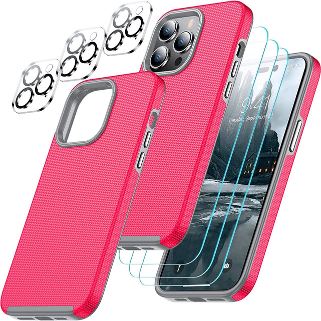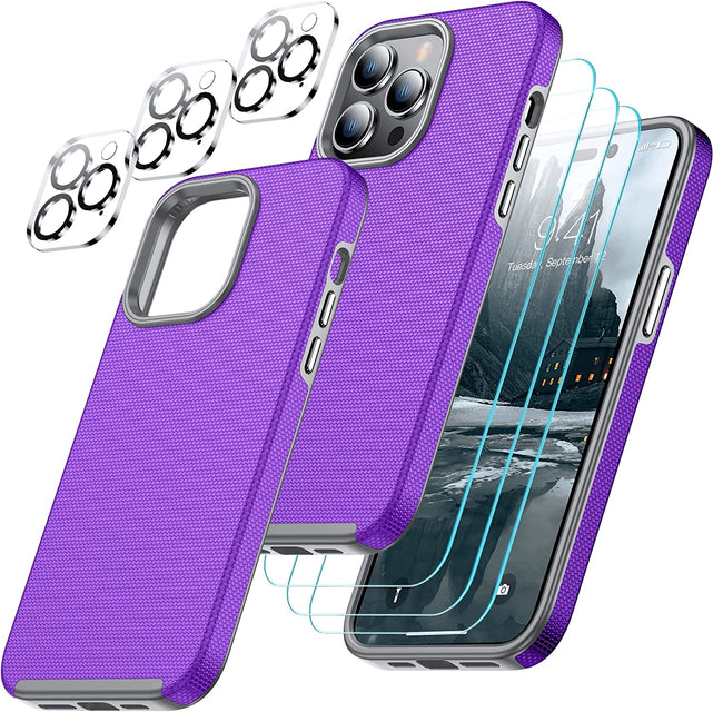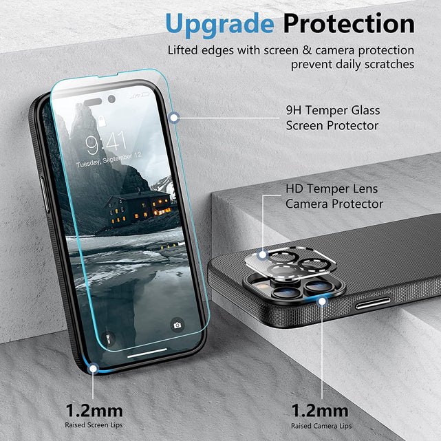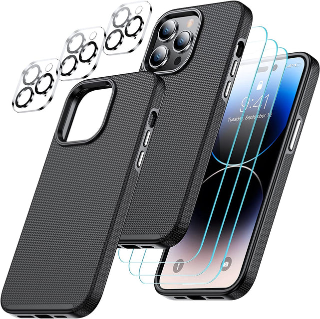 - đ±ăCombination 8 in 1 DesignăThe phone case is only designed for iPhone 14 Pro Max 6.7 inch. Cost-effective combination Included a case + 3 pack 9H tempered glass screen protectors and 3 pack HD camera lens protector,which protects your phone screen from accidental drops and scratches.Specially designed camera lens protector brings you the original beauty of every photo and video.