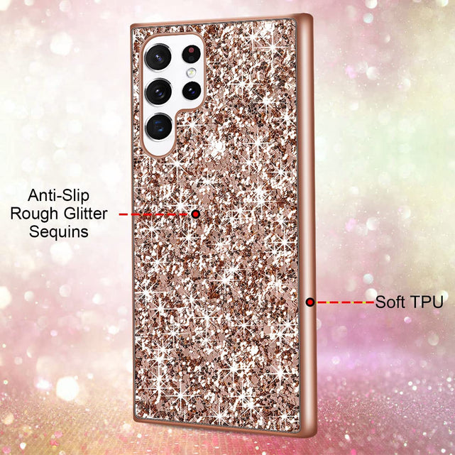 Galaxy S22 Ultra Glitter Sparkly Bling Slim Hard Durable Shockproof Case