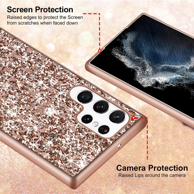 - 【Perfect Gift】Galaxy S22 Ultra sparkly glitter case is a gorgeous and perfect Christmas/ Thanks Giving/ Halloween gift for your friends and family.Warm Tips: The back of the case is rough not smooth. PLEASE CONTACT US IF YOU HAVE ANY PROBLEM, WE WILL HELP YOU SOLVE IT.