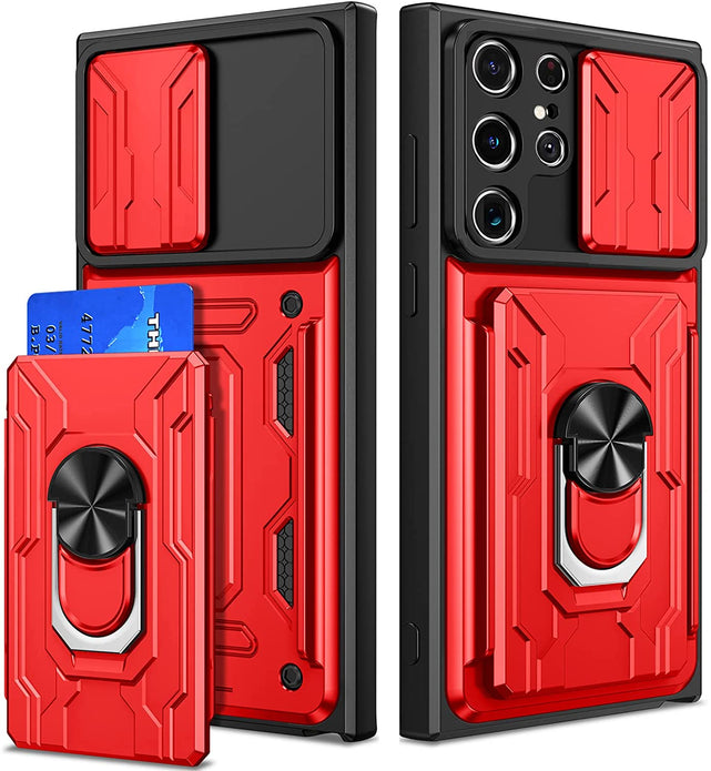 Galaxy S22 Ultra Magnetic Ring Kickstand Wallet Card Case