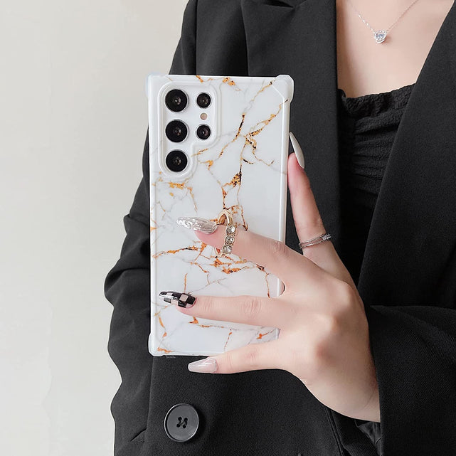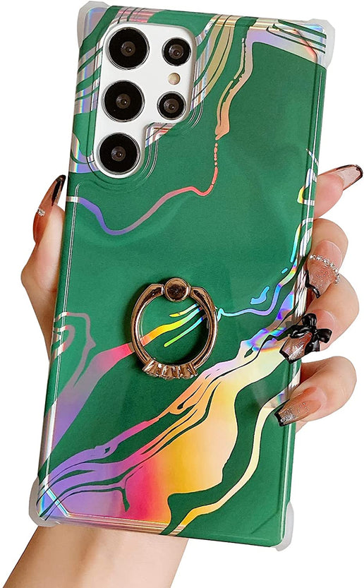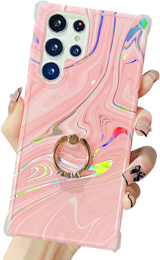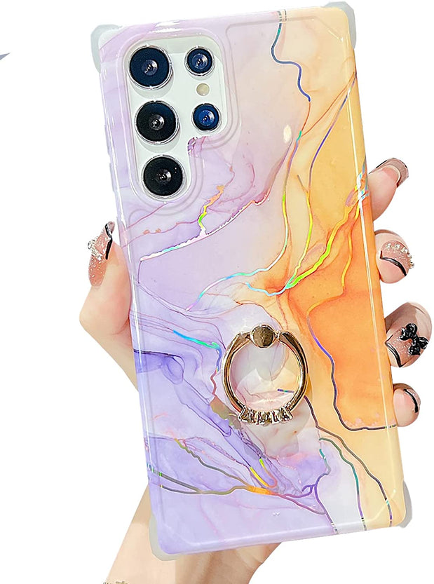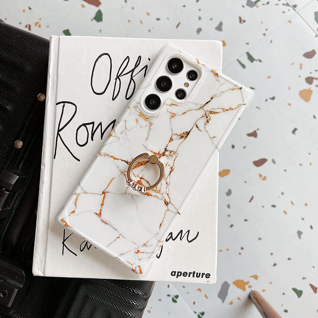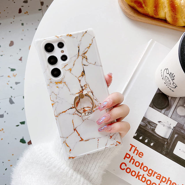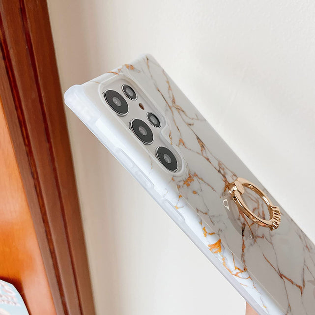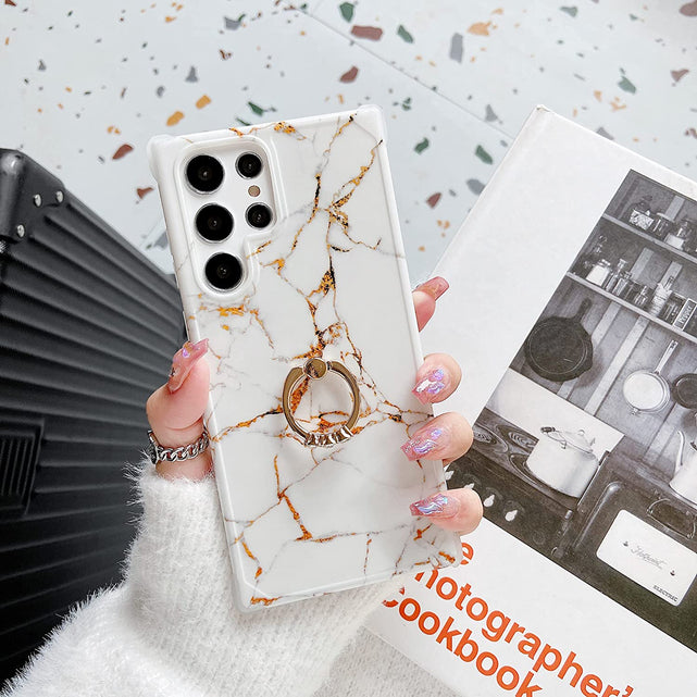 Galaxy S22 Ultra Ring Holder Diamond Rhinestone Marble Case
