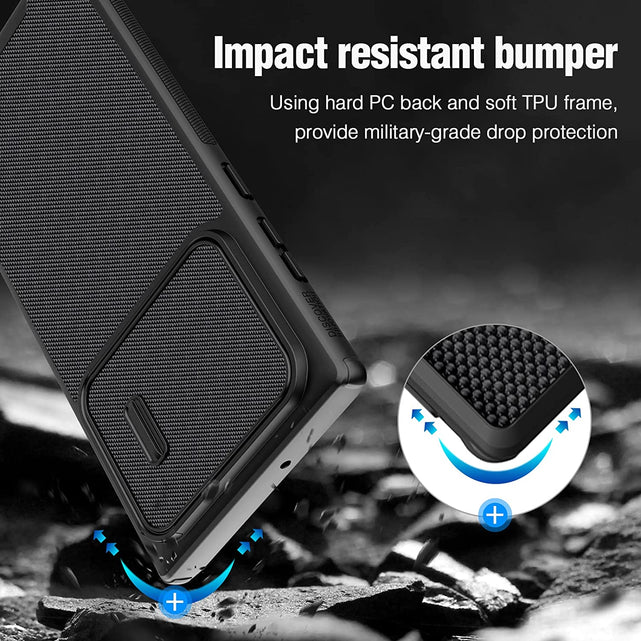 Galaxy S22 Ultra Silicone Edge Auto Rebound Slide Camera Case