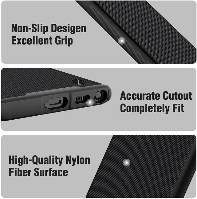 - â¨ăNylon Fiber MaterialăMade from refined nylon fiber material which is tough and durable, Textured s22 ultra case enjoys excellent craftsmanship quality. Nylon material has strong anti-pollution ability to reduce fingerprint leaving.