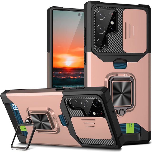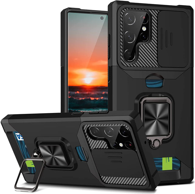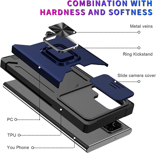 Galaxy S22 Ultra Slide Camera Cover Kickstand Heavy Duty Case