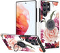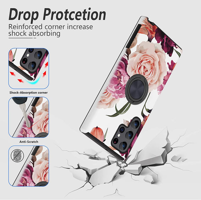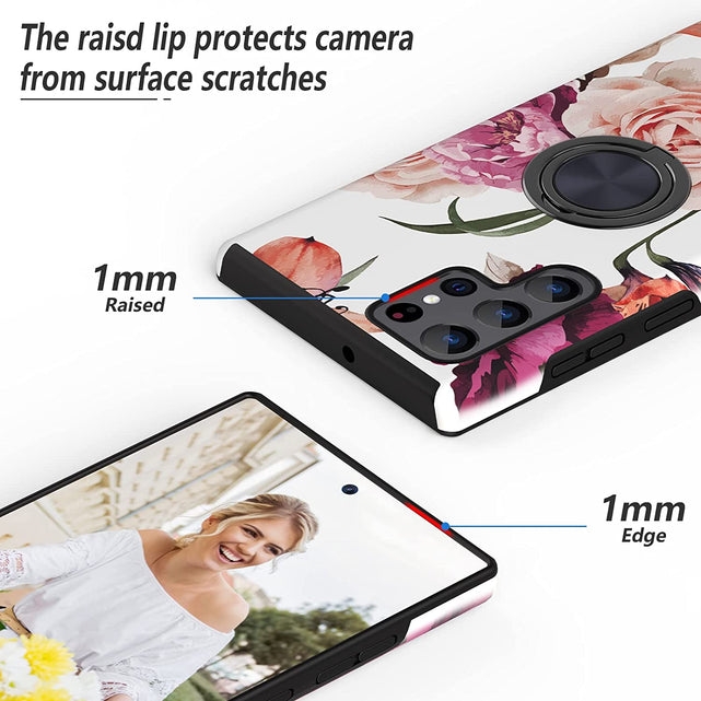 Samsung Galaxy S22 Ultra Pink Flower Pattern Loop Ring Case